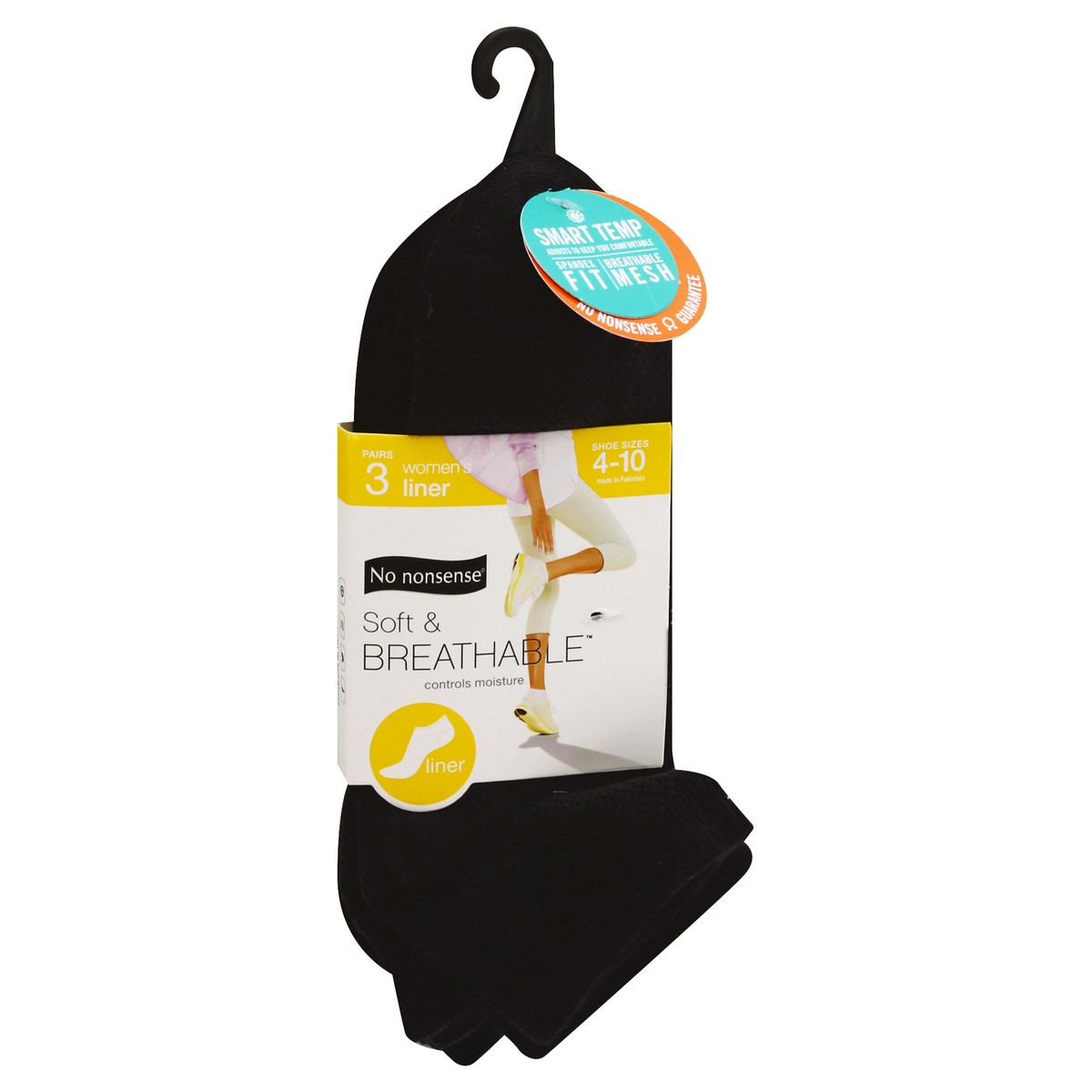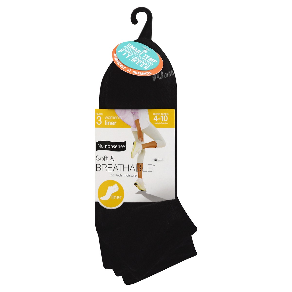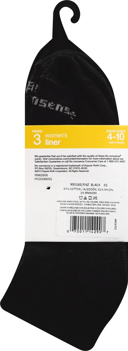 No Nonsense Soft & Breathable Women's Liner 4-10 Black Socks 3 ea