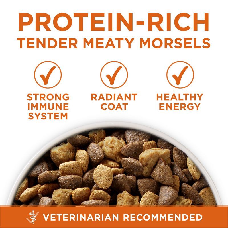 - Deliciously crunchy dog kibble and tender meaty morsels combine for a taste and texture dogs love and work with added calcium for a premium dog food that supports strong teeth and healthy gums