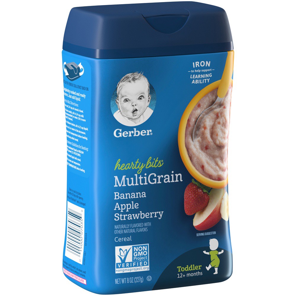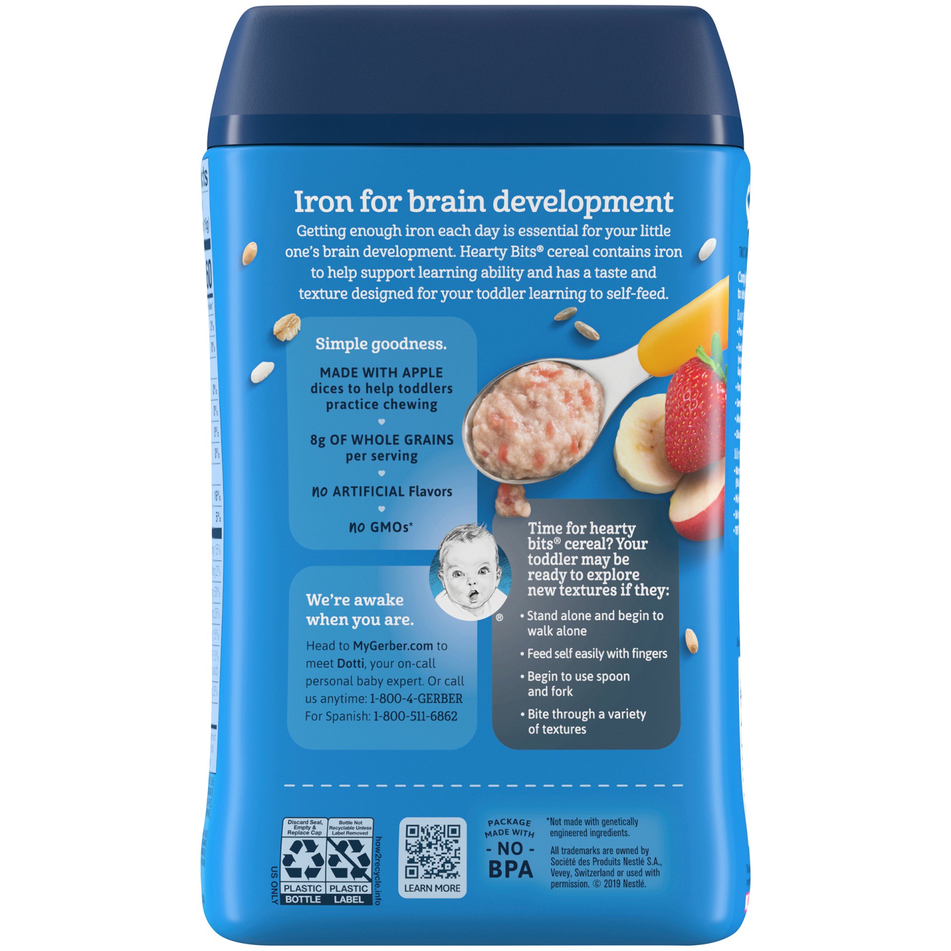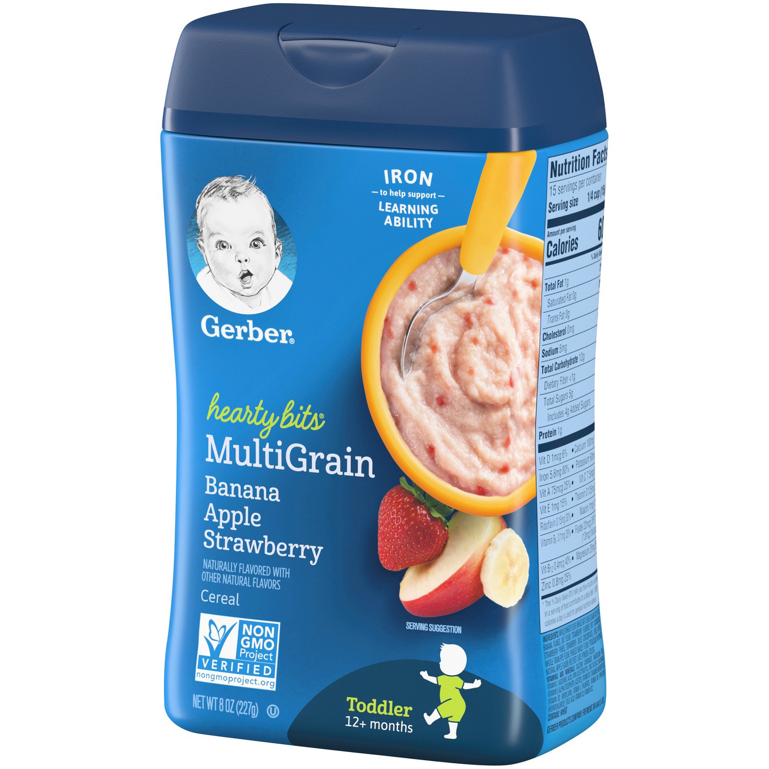 Gerber Cereal for Toddler Grain & Grow, Hearty Bits Multigrain Baby Cereal, Banana Apple Strawberry, 8 oz Canister