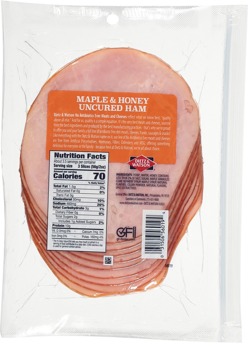 Dietz & Watson Uncured Maple & Honey Ham 7 oz