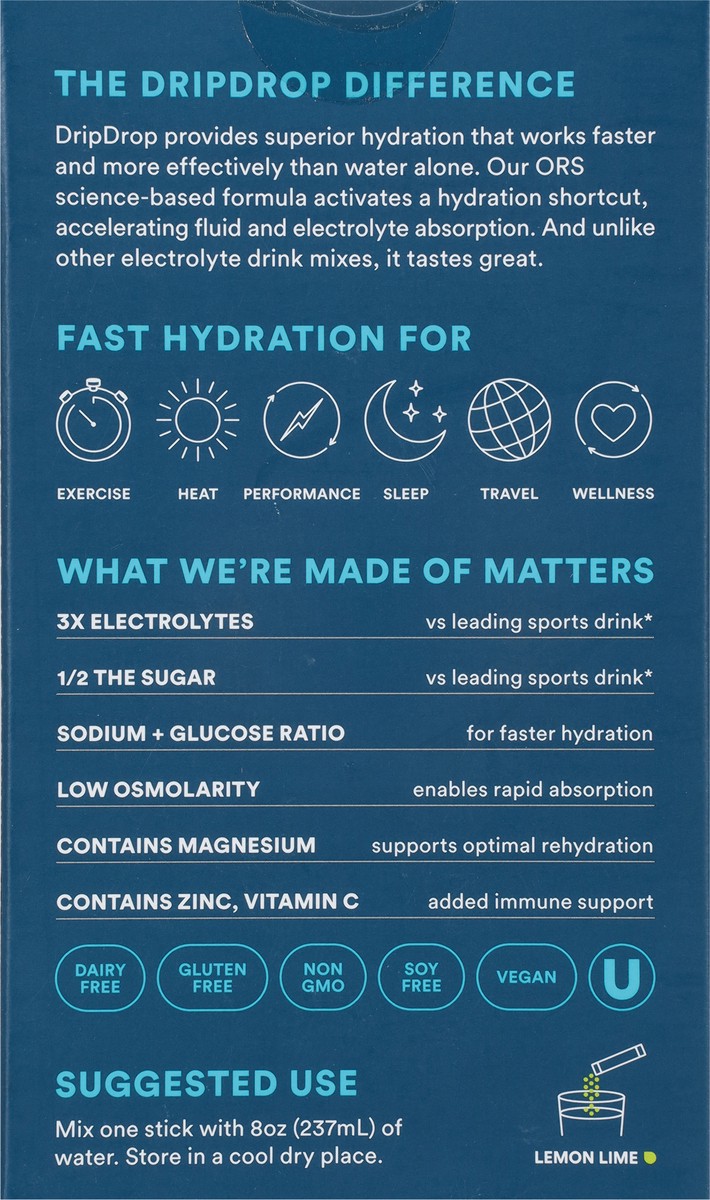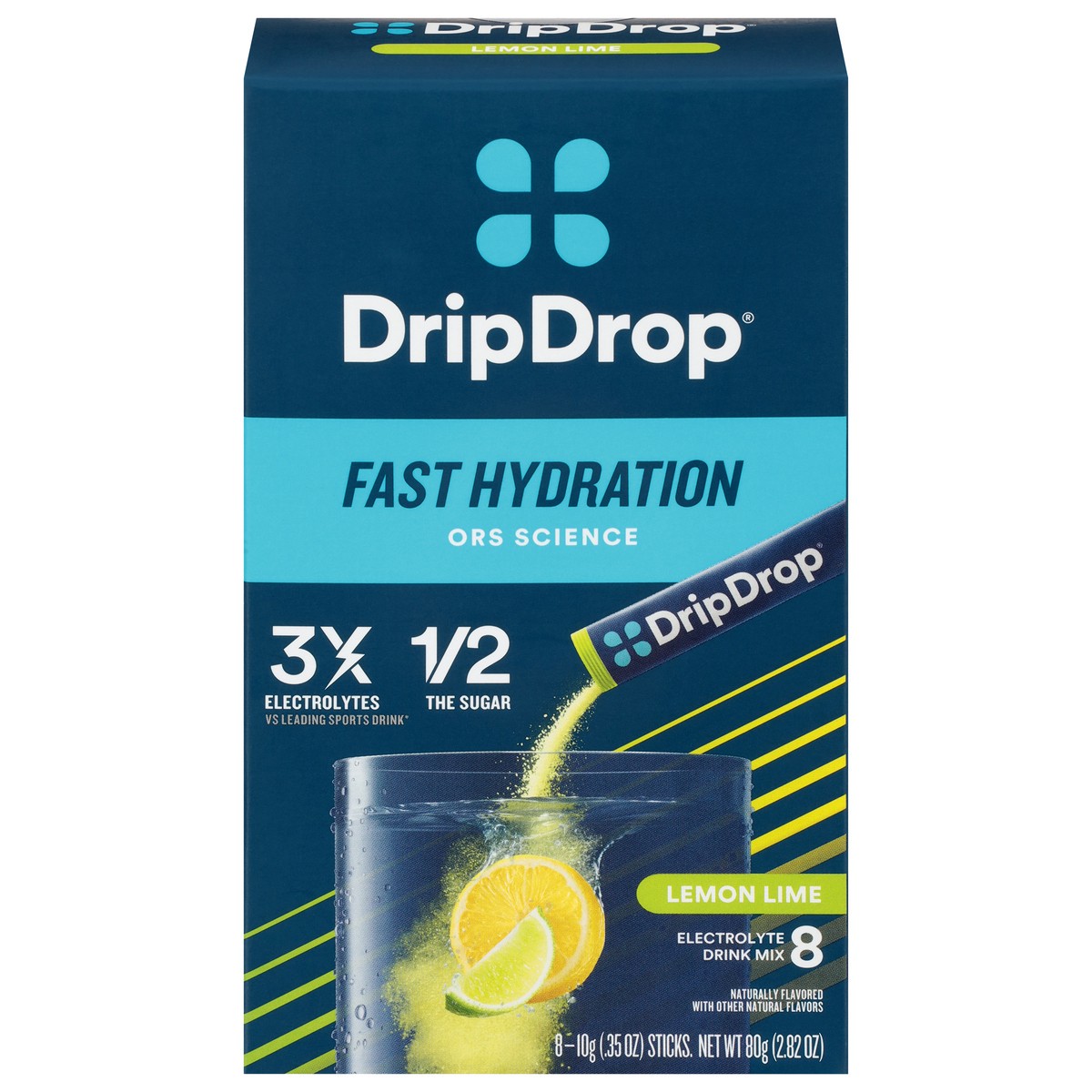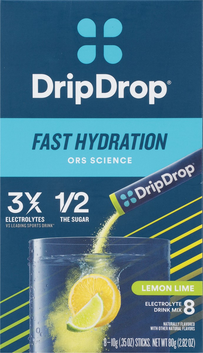 DripDrop Lemon Lime Electrolyte Drink Mix - 8 x 0.35 oz Sticks
