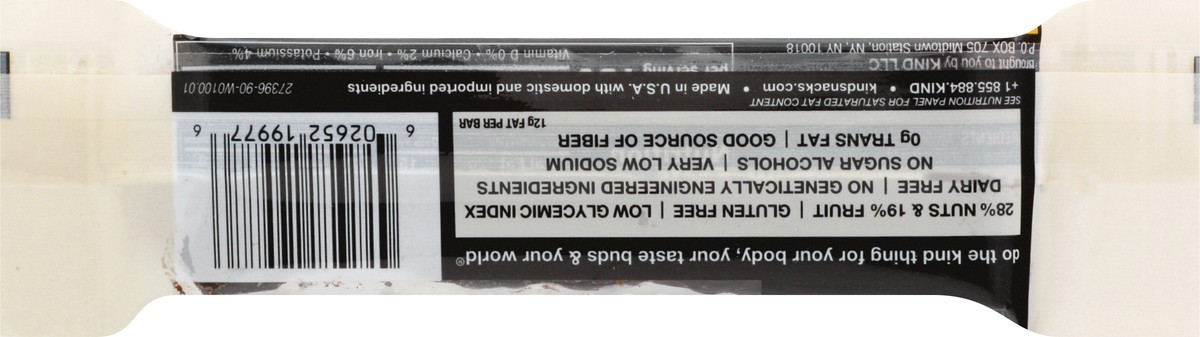 0 g trans fat. 12 g fat per bar. Gluten free. Dairy free. Very low sodium. Low glycemic index. No sugar alcohols. Good source of fiber. See nutrition panel for saturated fat content. No genetically en…