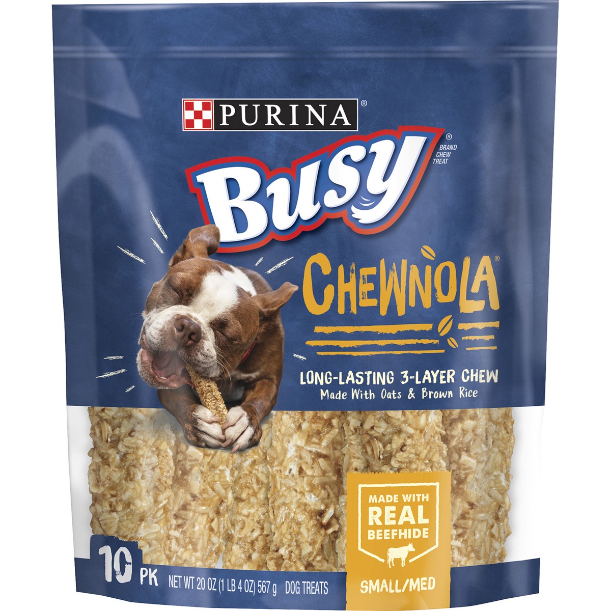 Purina Busy Rawhide Small/Medium Breed Dog Bones, Chewnola With Oats & Brown Rice