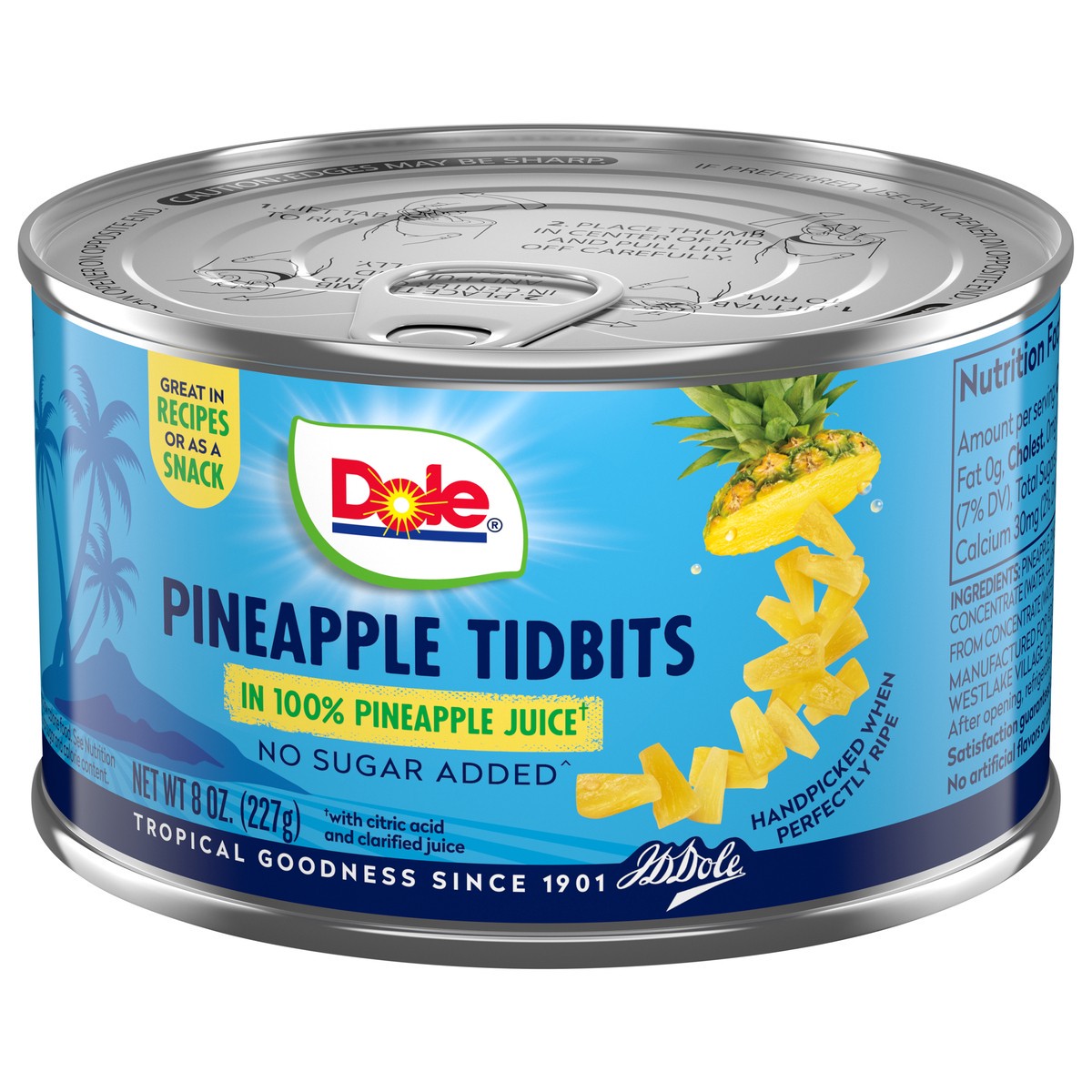 DOLE Pineapple Tidbits in 100% Juice are rich in Vitamin C, have no added sugar, and are made from all natural fruit and non-GMO ingredients. They're naturally gluten free and Kosher, and great for re…