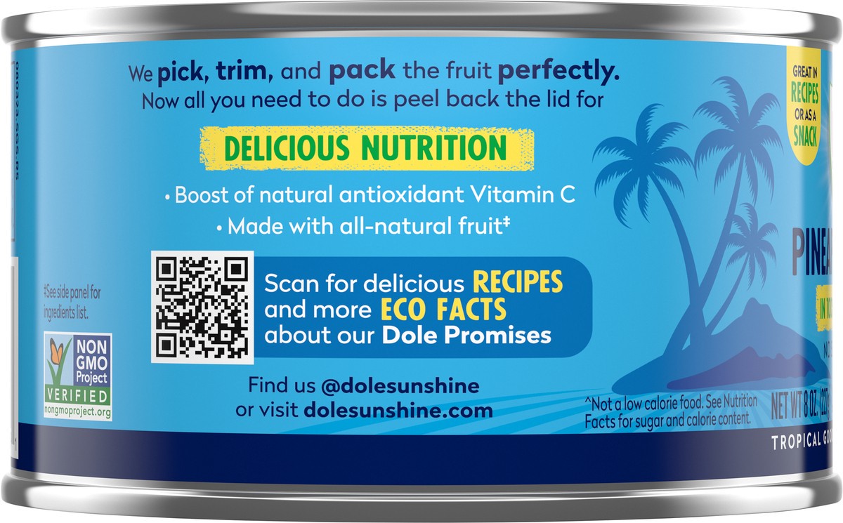 DOLE Pineapple Tidbits in 100% Juice are rich in Vitamin C, have no added sugar, and are made from all natural fruit and non-GMO ingredients. They're naturally gluten free and Kosher, and great for re…