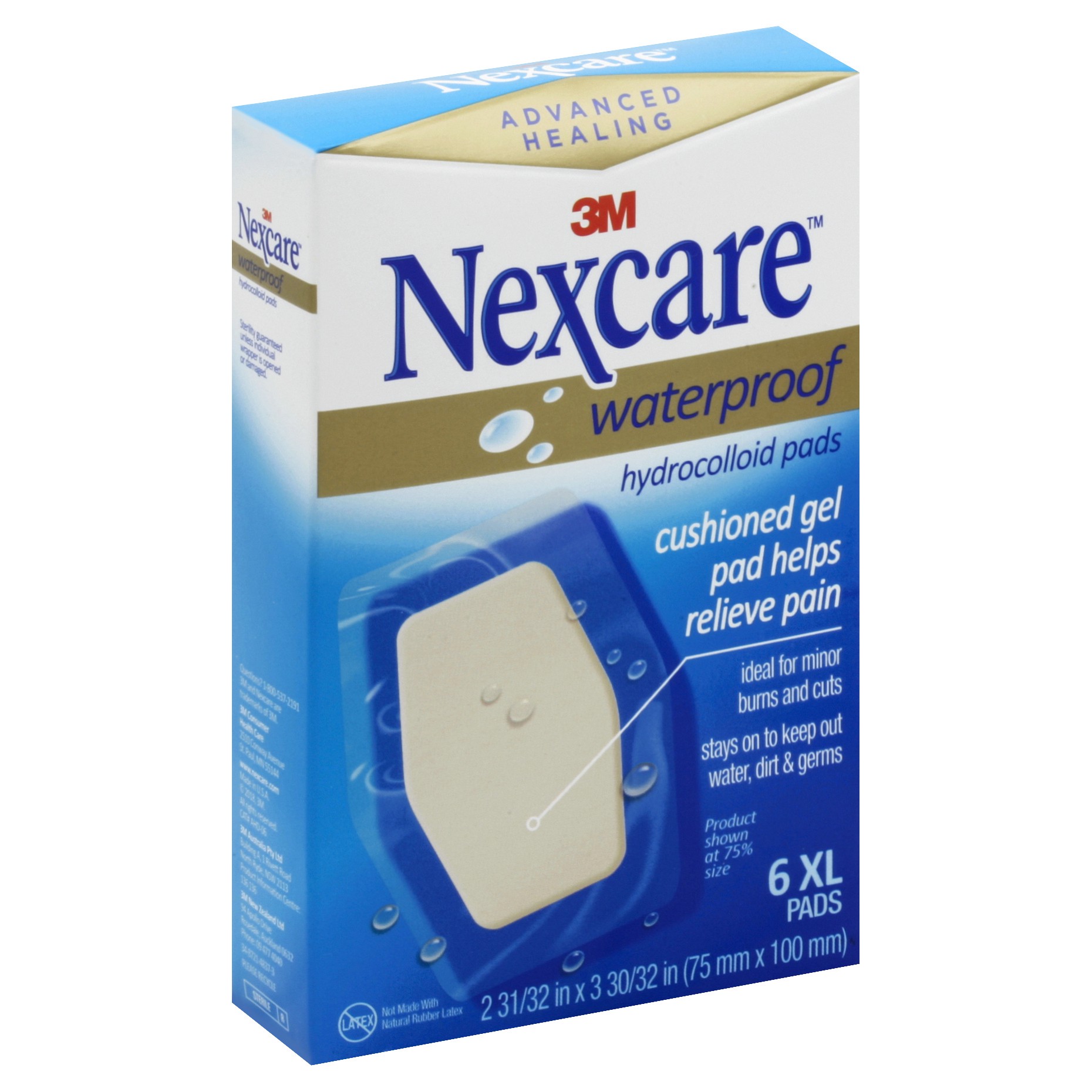 Contains: 6 - 2-31/32 in x 3-30/32 in (75 mm x 100 mm). Cushioned gel pad helps relieve pain. Ideal for minor burns and cuts. Stays on to keep out water, dirt & germs. Advanced healing. Not made with …