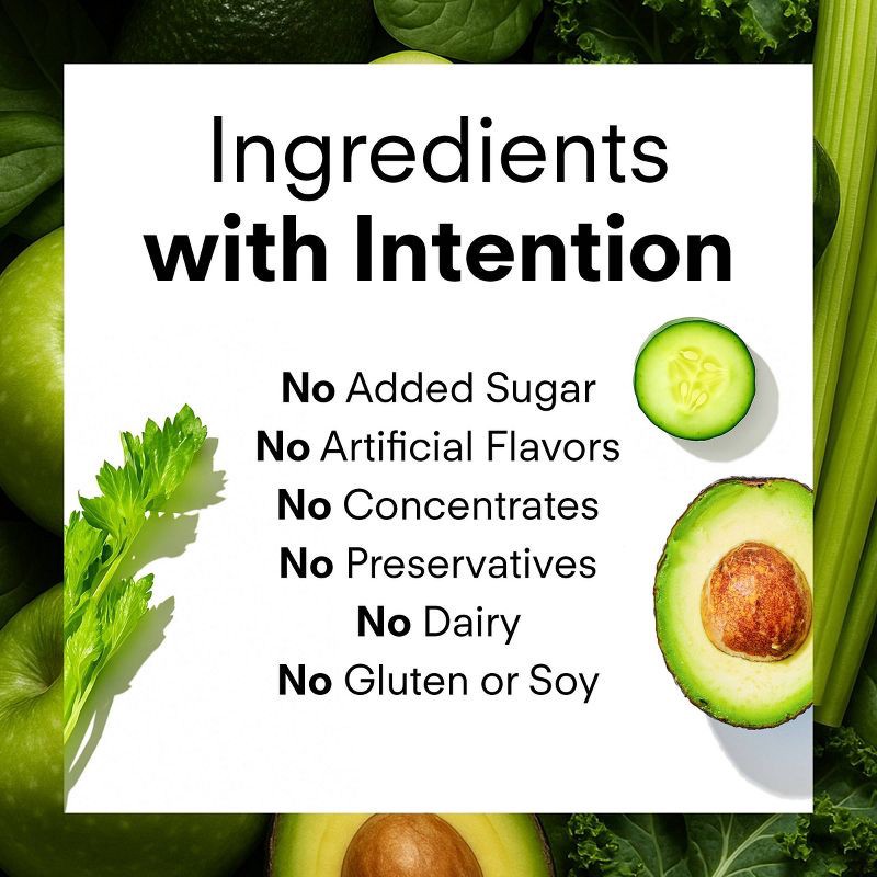 APPLE JUICE, BANANA, AVOCADO PULP (AVOCADO, CITRIC ACID), SPINACH, KALE, CELERY JUICE, CUCUMBER JUICE, LEMON JUICE, CHICORY FIBER, VITAMIN C (ASCORBIC ACID, NATURALLY SOURCED), SPIRULINA EXTRACT