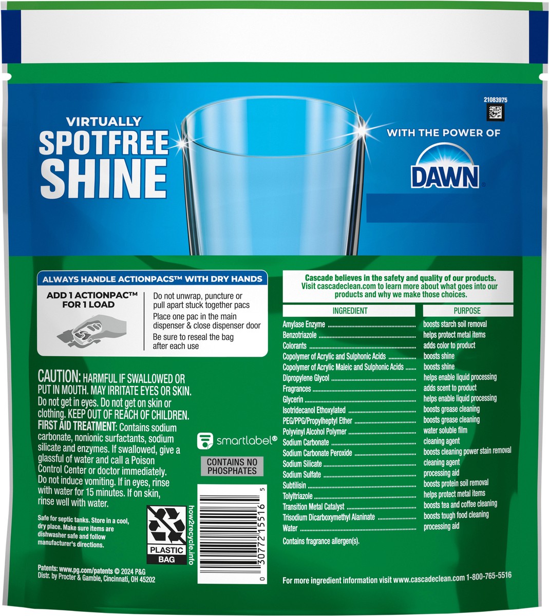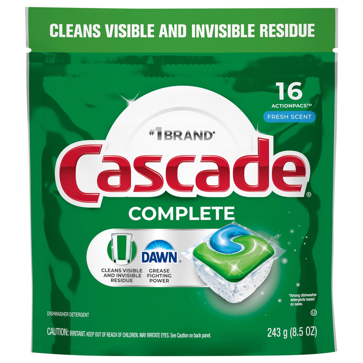 Cascade Complete ActionPacs dissolve fast to release the grease fighting power of dawn early in the cycle. Get virtually spotfree shine and sparkling clean dishes from even the toughest messes. Save u…