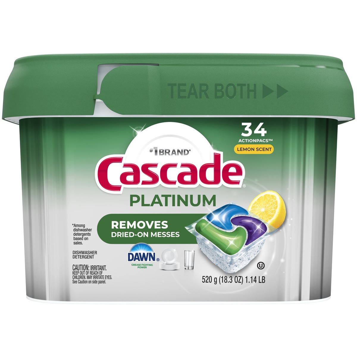 Cascade Platinum dishwasher ActionPacs scrub away dried-on food with no pre-washing required. That''s because the pod dissolves fast to start cleaning right away, releasing the soaking power of Dawn d…