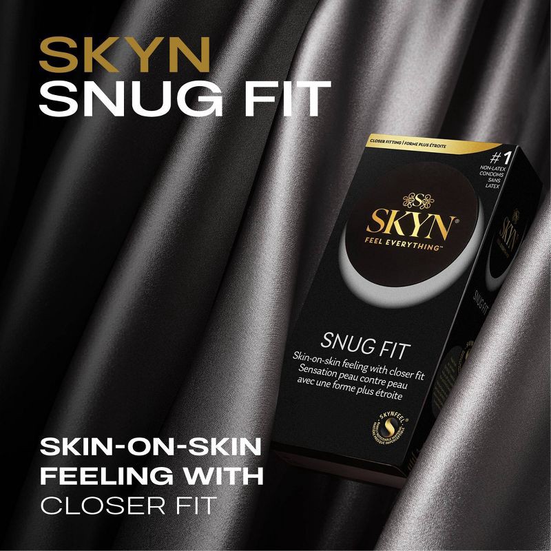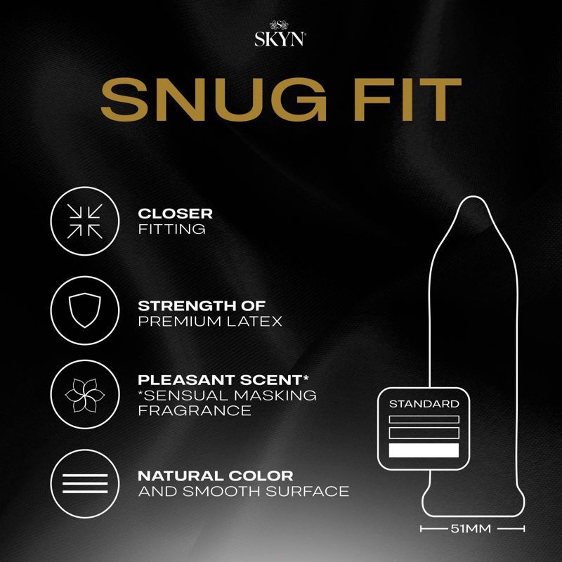 Upgrade to the new generation of SKYN condoms with SKYN Snug Fit. Made from our revolutionary SKYNFEEL material, these premium, polyisoprene-lubricated condoms are designed for a closer, snug fit, del…