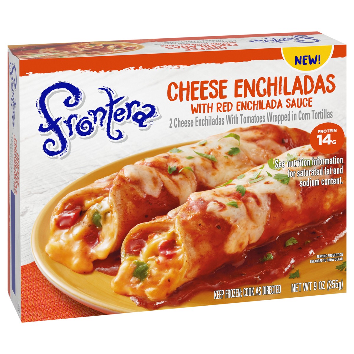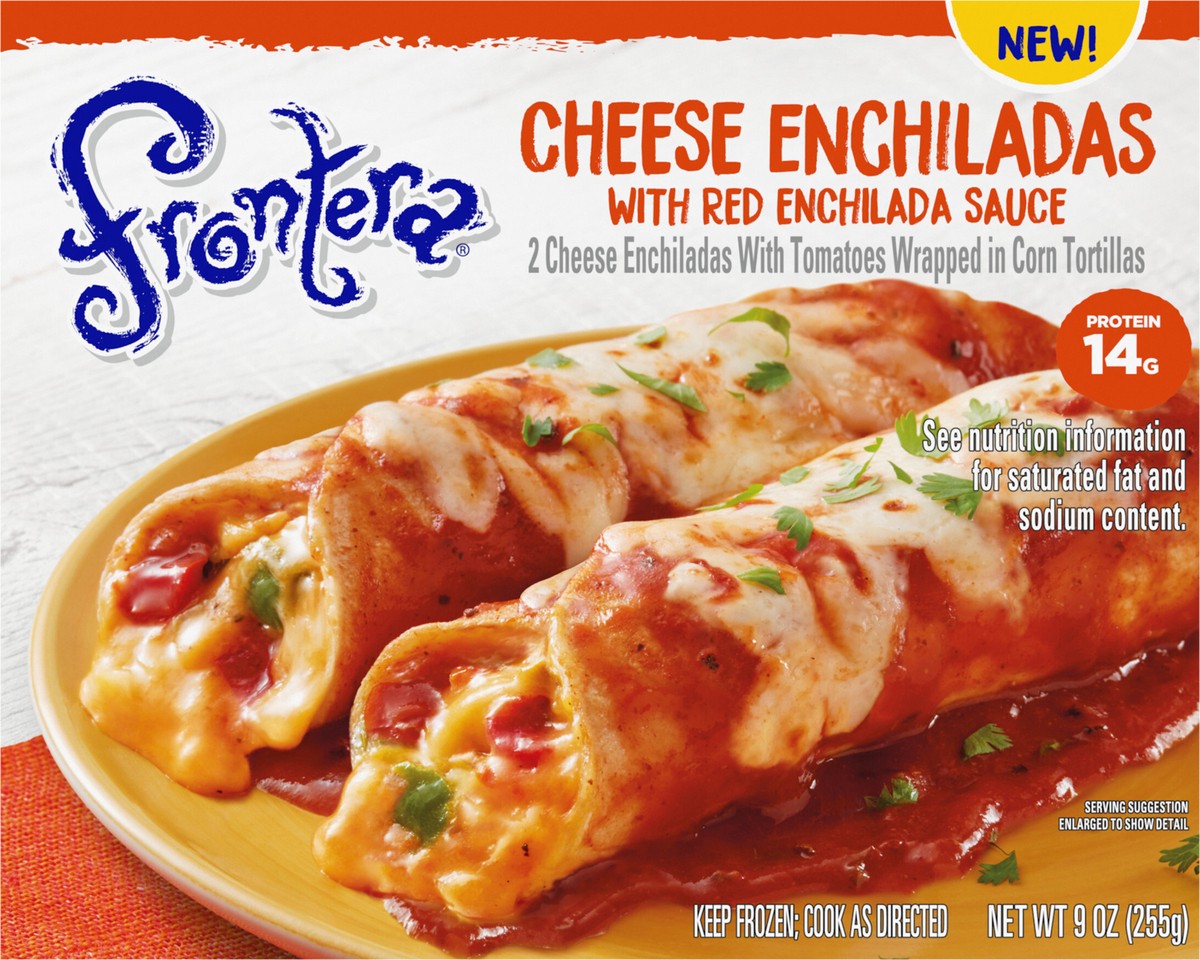 - Contains one 9 oz. Frontera Cheese Enchiladas With Red Enchilada Sauce frozen meal