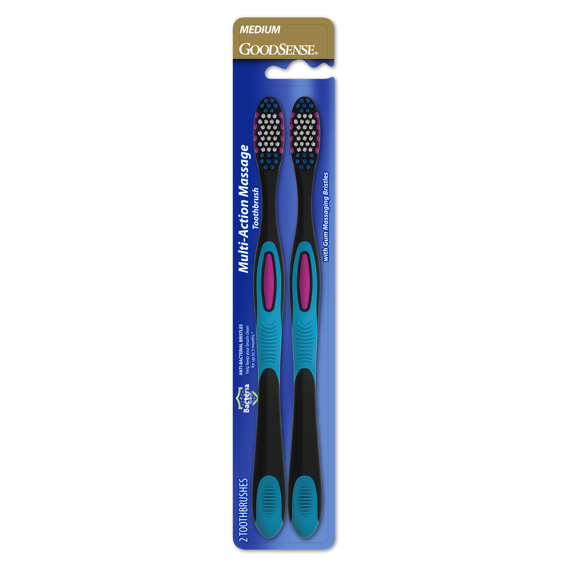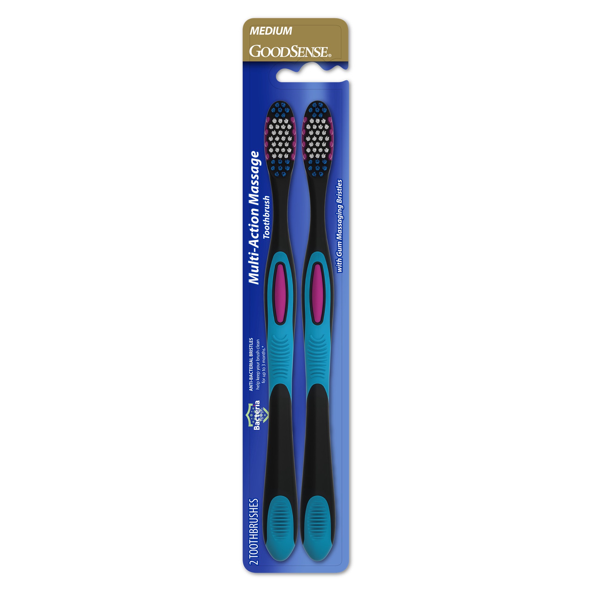 Good Sense Multi-Action Massage Antibacterial Toothbrushes with Gum Massaging Bristles, 2 Medium-Bristled Toothbrushes, 2 Count