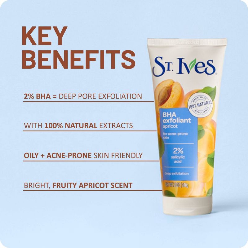- Pesky pimples, your days are numbered! Meet your match with St. Ives BHA Apricot Face Exfoliant, ready to show those blemishes who's boss