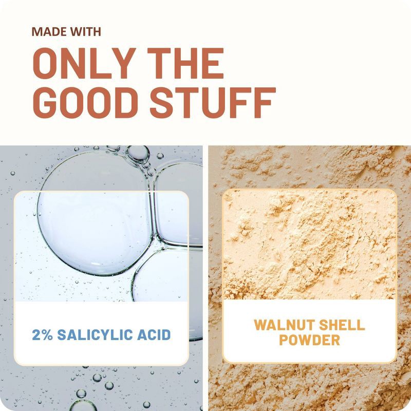 - Mother nature's finest. Packed with 100% natural exfoliants including milled walnut shells and apricot pits, our formula gives you that deep cleansing exfoliation you love. Smooth, glowy skin awaits