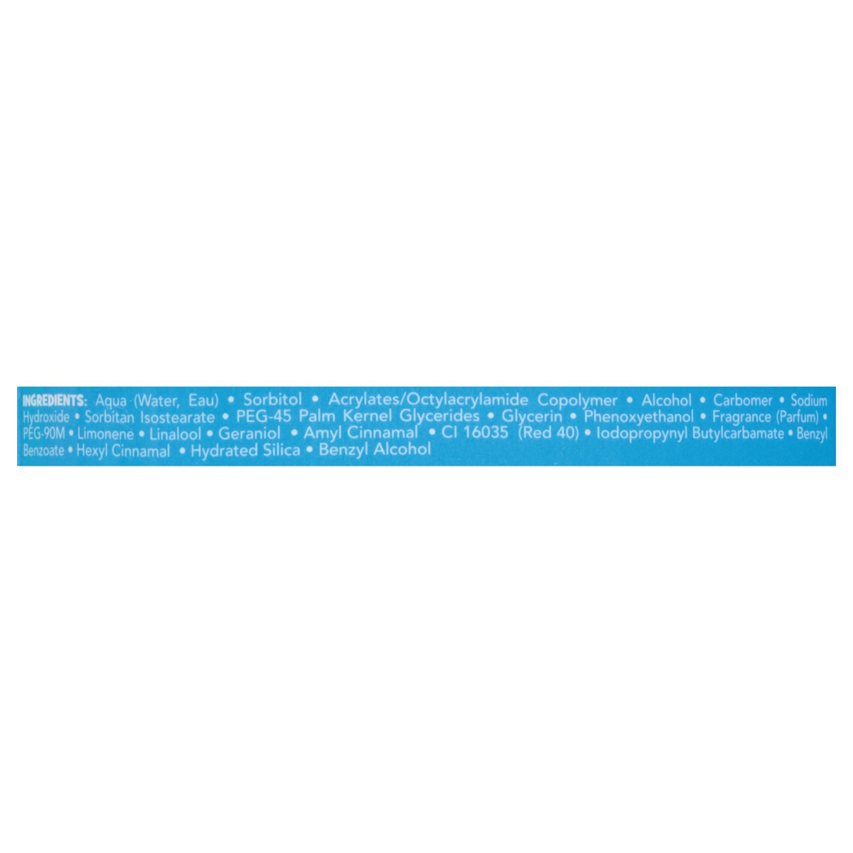 Water (Aqua), PVP, Alcohol,PEG-150, Sorbitol, Hydroxyethylcellulose, Triethanolamine, Carbomer, Cyamopsis, Tetragonoloba (Guar) Gum, Fragrance (Parfum), Methylchloroisothiazolinone, Methylisothiazolin…