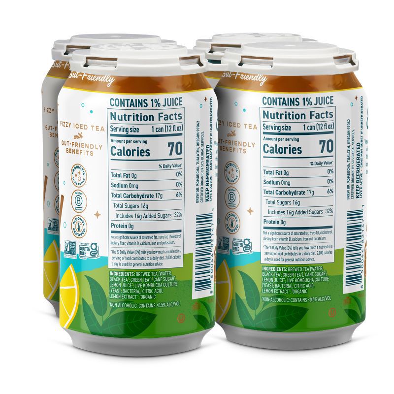 BREWED TEA (WATER BLACK TEA*, GREEN TEA*), CANE SUGAR* LEMON JUICE*, LIVE KOMBUCHA CULTURE (YEAST, BACTERIA), CITRIC ACID, LEMON EXTRACT. *ORGANIC