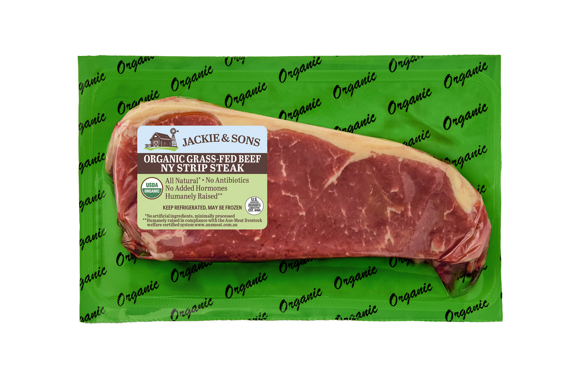 Jackie & Sons Organic Beef, Grass-Fed New York Strip Steak. All Natural, No Antibiotics, No added Hormones and Humanely raised.