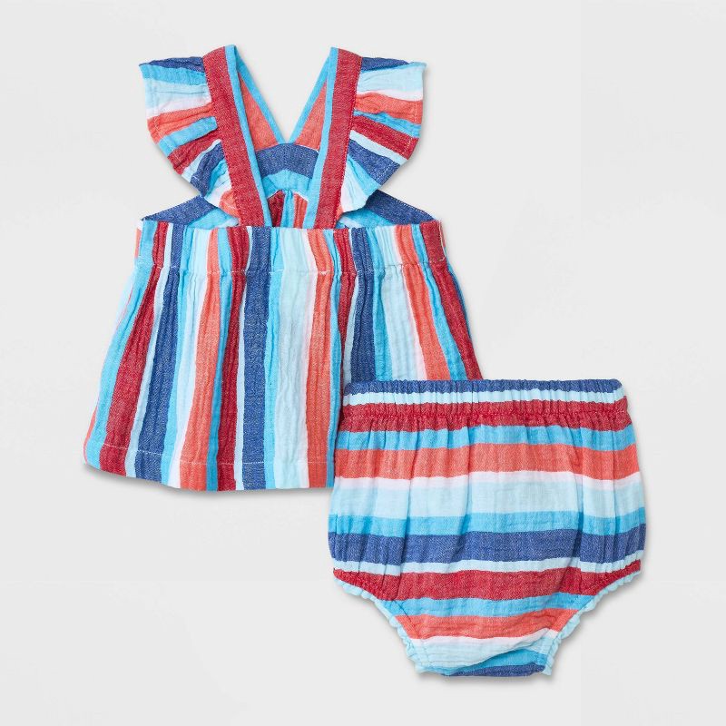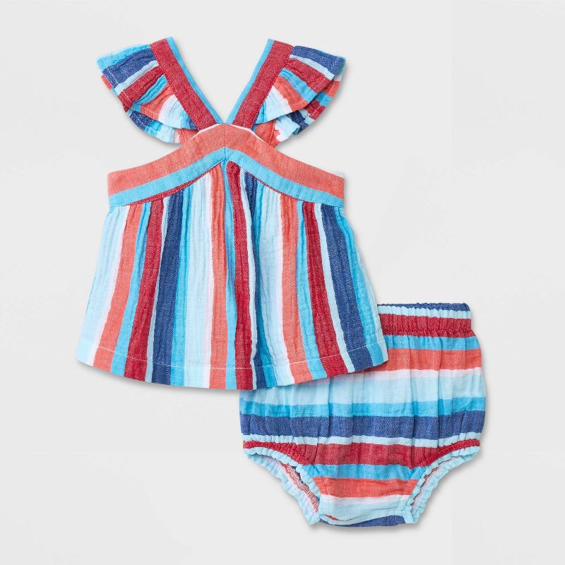 Add some breezy vibes to your baby's closet with this Gauze Top & Bottom Set from Cat & Jack™. This two-piece outfit set includes a halter tank top with flutter-detail shoulder straps and a pair of el…