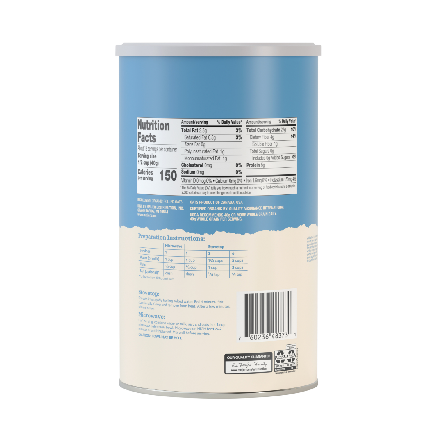 Experience the difference wholesome ingredients make with the high-fiber True Goodness Organic Rolled Quick Oats. These 100% whole grain oats will keep you and your family feeling full and energized t…
