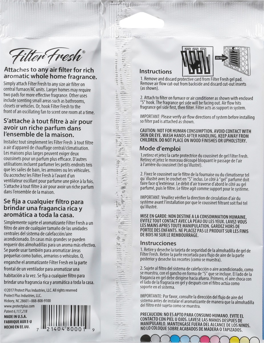 Fragrance. Air flow. Simply attaches to any furnace/AC filter. Contains one air freshener. Search for scent. Attaches to any air filter for rich aromatic whole home fragrance. Simply attach Filter Fre…