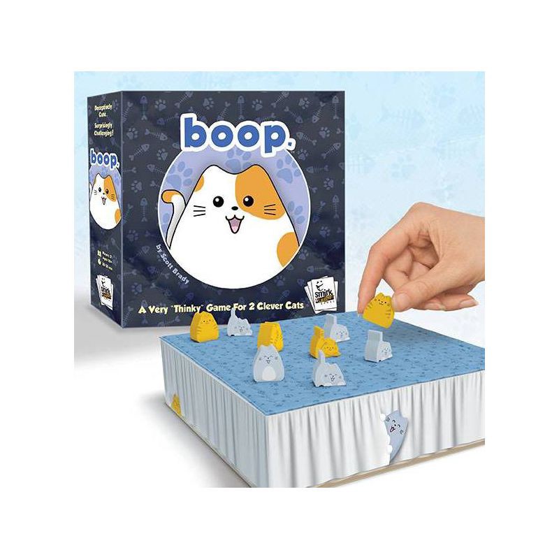 The adorably 'thinky' game for 2 clever cats.Every time you place a kitten on the bed, it goes “boop.” Which is to say that it pushes every other kitten next to it on the board one space away. Line up…