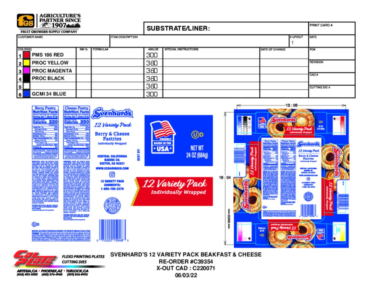 Berry Pastry: Danish Mix (Enriched Wheat Flour [Wheat Flour, Niacin, Iron, Thiamine Mononitrate, Riboflavin, Folic Acid], Sugar, Dextrose, Palm Oil, Soybean Oil, Nonfat Milk, Mono- and Diglycerides, C…