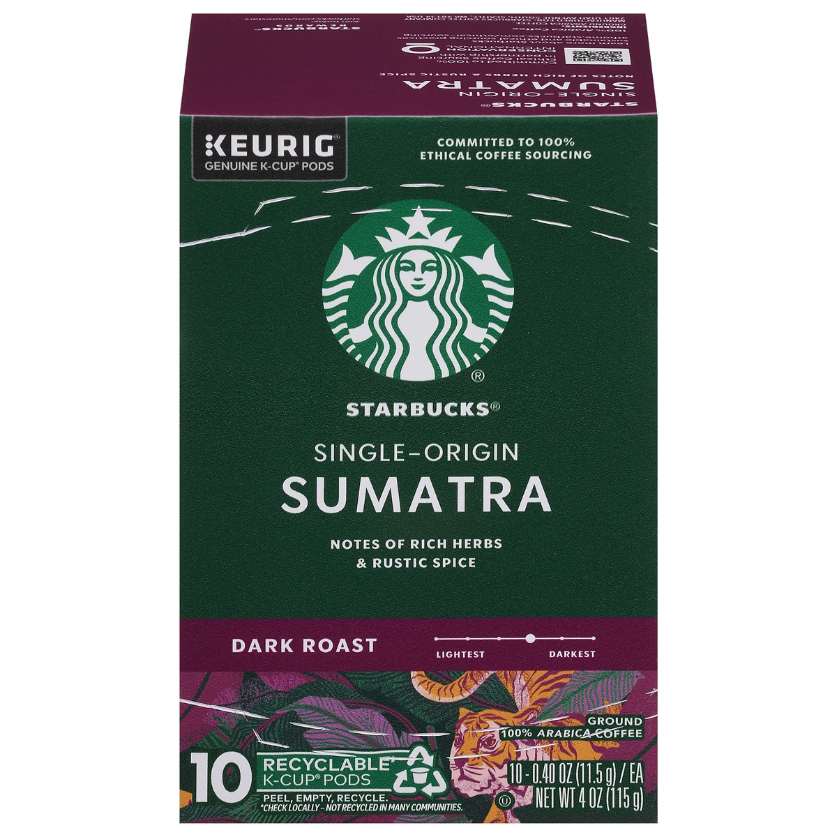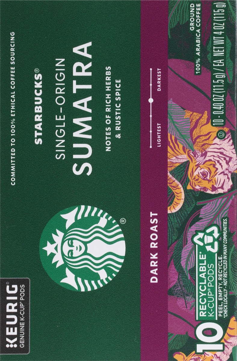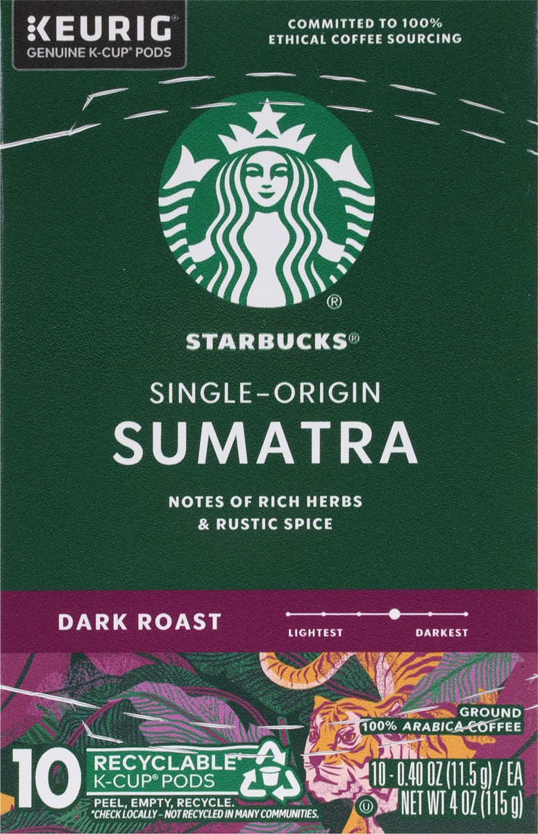 Starbucks K-Cup Coffee Pods, Dark Roast Hot or Iced Coffee, Single-Origin Sumatra, 10 Keurig Pods
