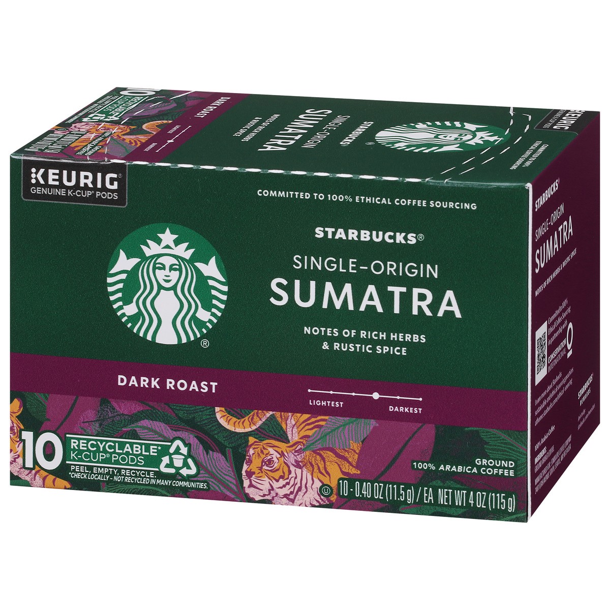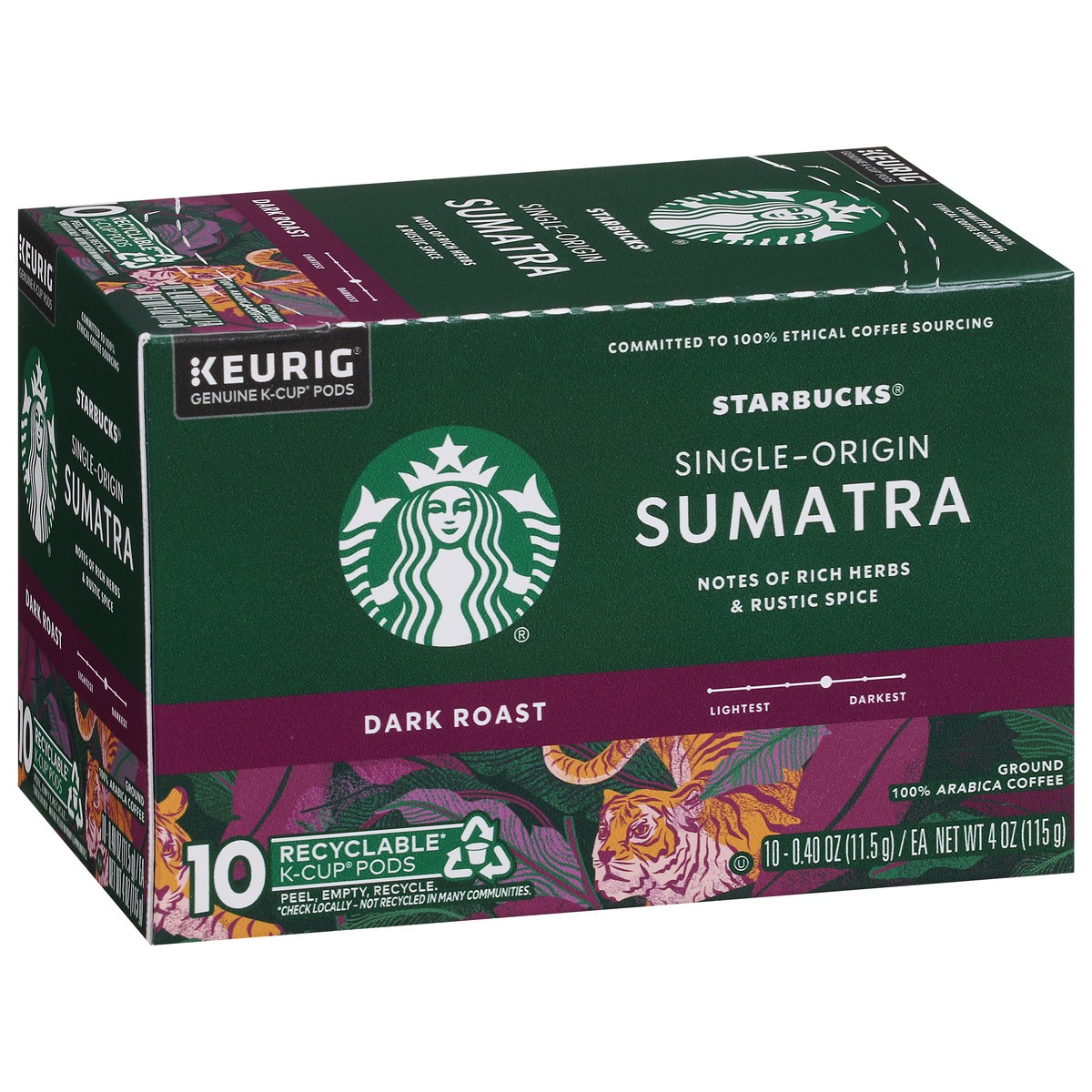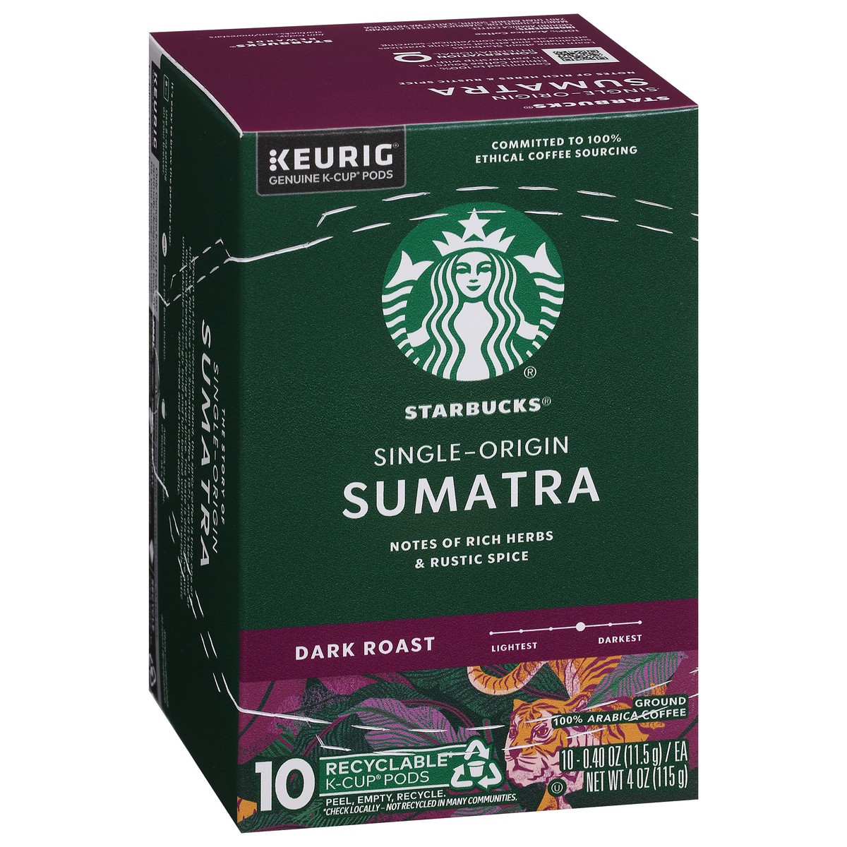 Starbucks K-Cup Coffee Pods, Dark Roast Hot or Iced Coffee, Single-Origin Sumatra, 10 Keurig Pods