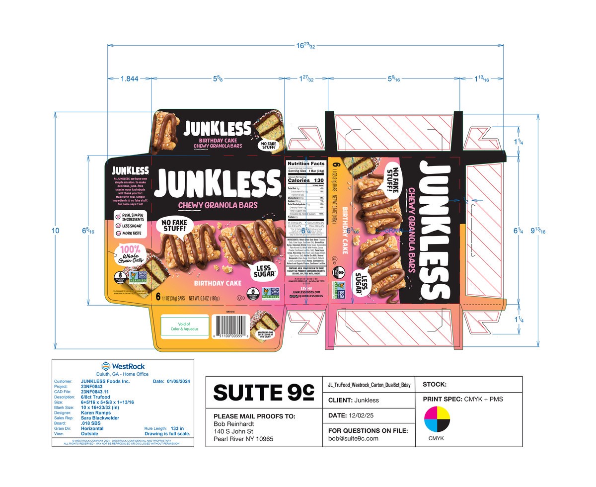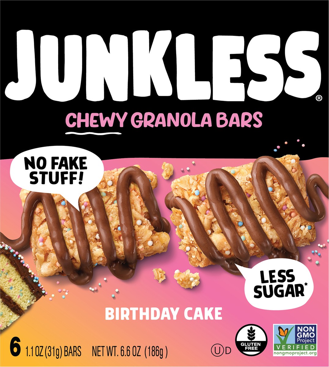 Junkless Drizzled Chewy Birthday Cake Granola Bars 6 - 1.1 oz Bars