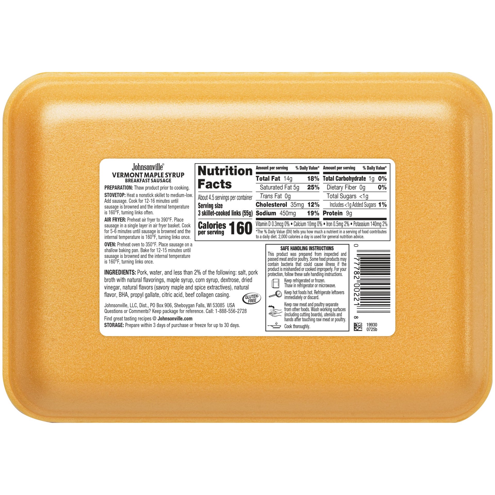 Ingredients: Pork, water, and less than 2% of the following: salt, pork broth with natural flavorings, maple syrup, corn syrup, dextrose, dried vinegar, natural flavors (savory maple and spice extract…