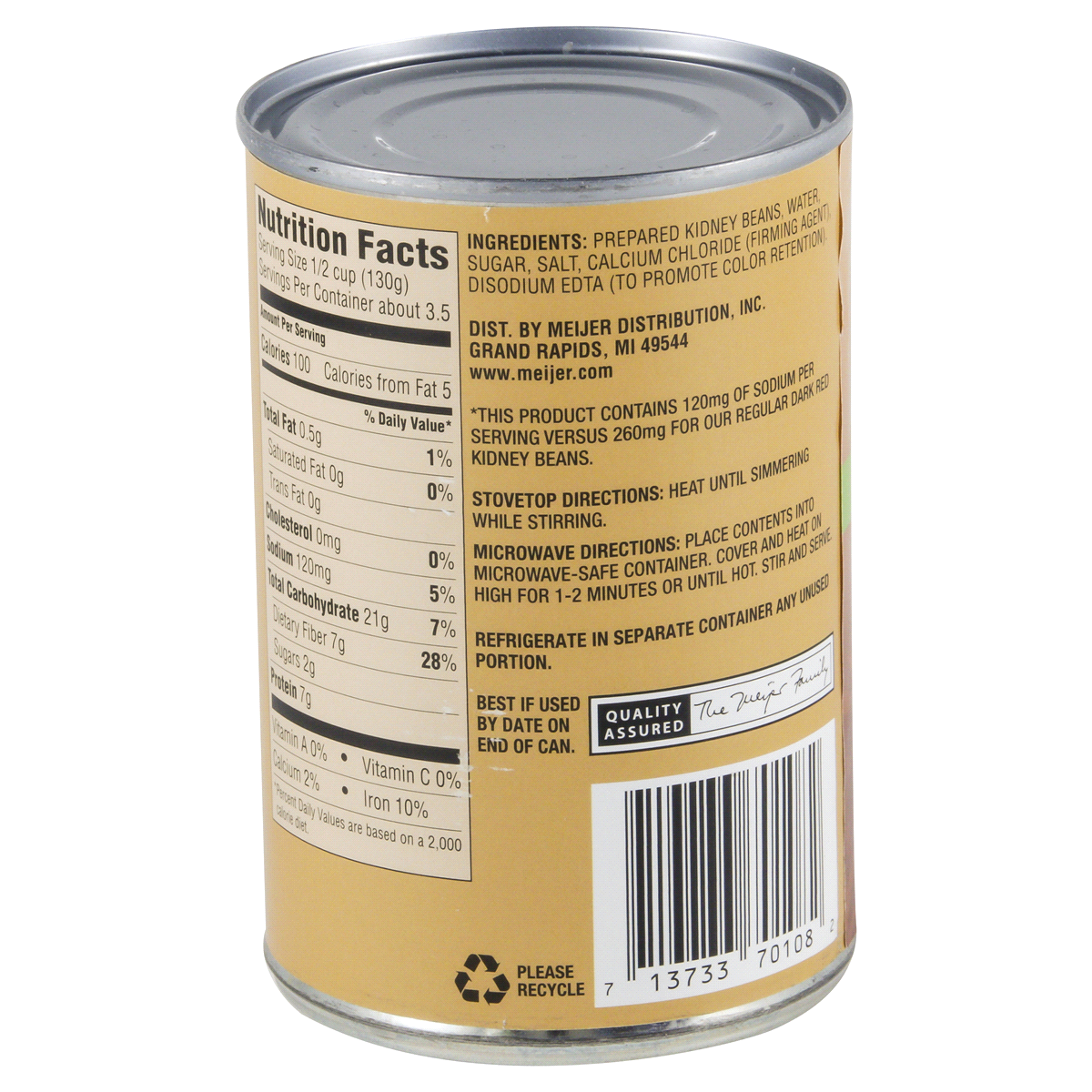 Reduced Sodium 50% less sodium than our regular dark red kidney beansnAdd Meijer Reduced Sodium Dark Red Kidney Beans to chili, rice, salads and more for meals that look and taste great.