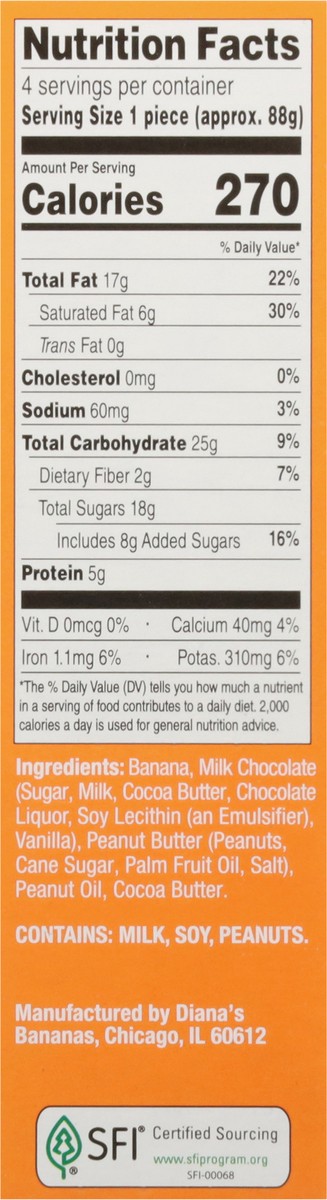 Diana's Real Bananas Peanut Butter Cup Whole Fruit Treats 4 - 3.1 oz Pieces