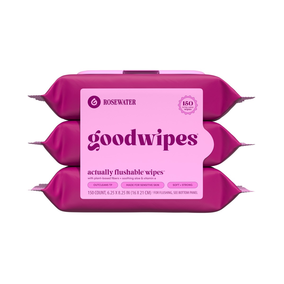 Goodwipes XL Flushable Wipes - Rosewater 3 pk, 150 ct