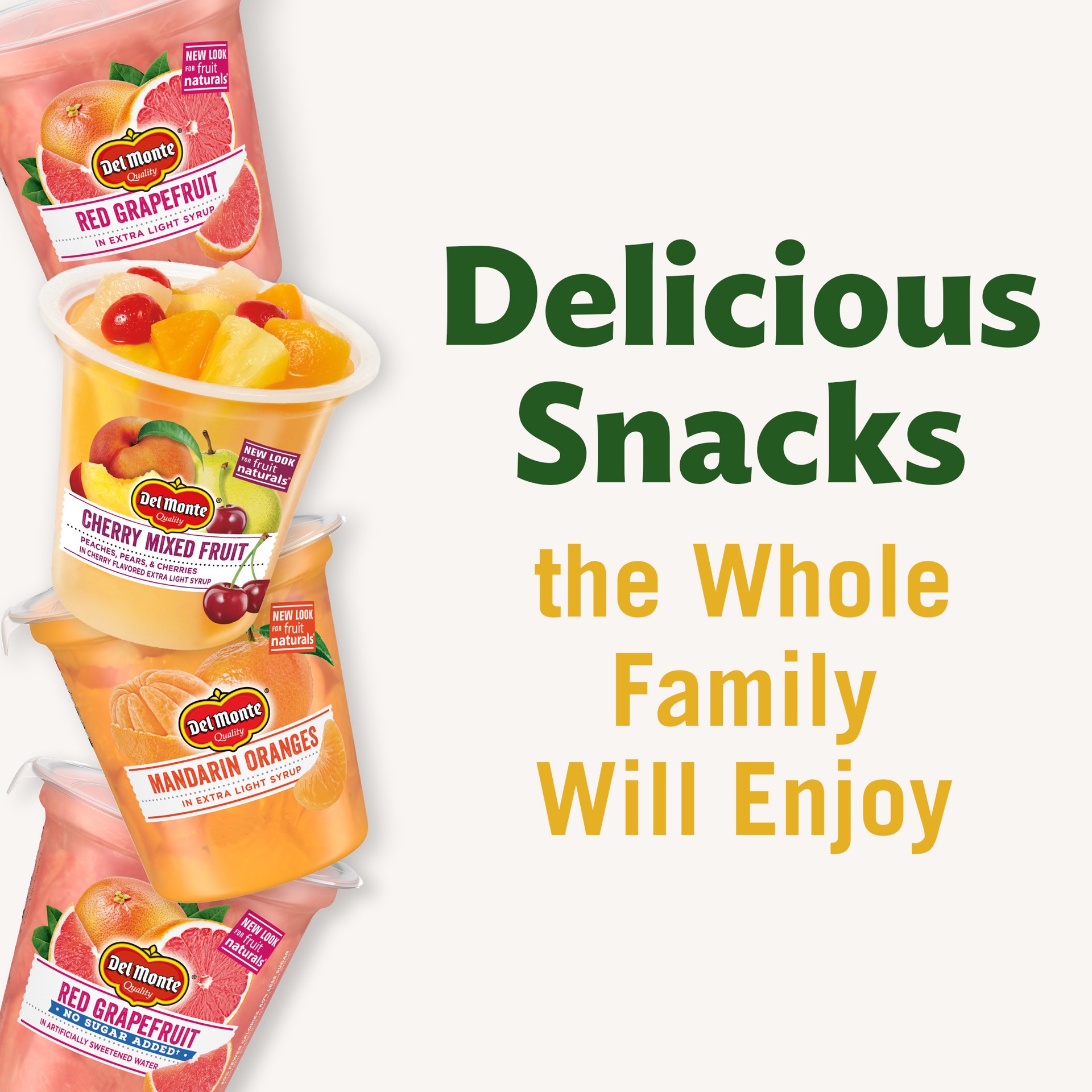Peaches, pears, & cherries in cherry flavored extra light syrup. Excellent source of antioxidant vitamin C. New look for fruit naturals. Quality. www.delmonte.com. how2recycle.info. Visit us at: www.d…