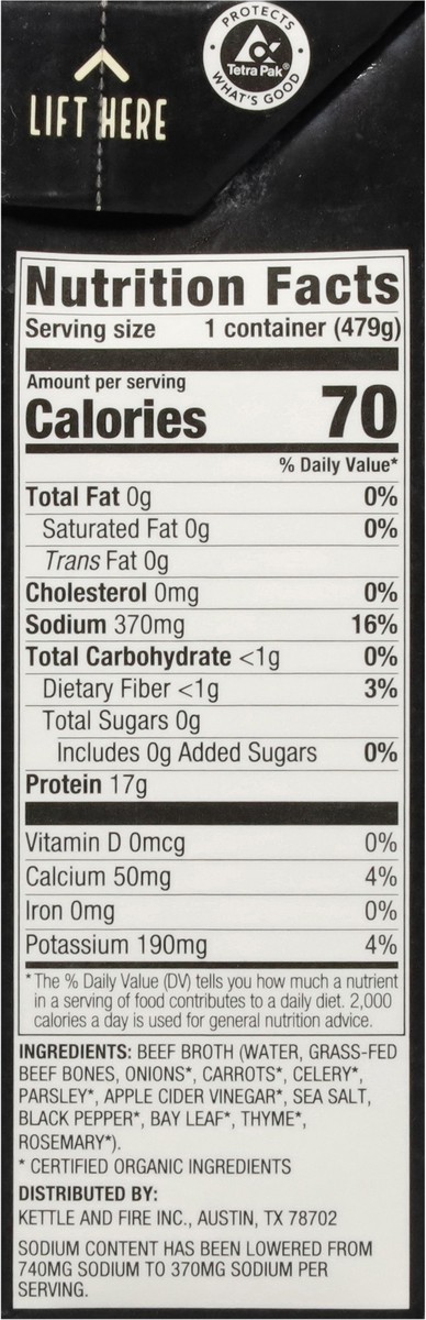 Kettle & Fire Reduced Sodium Classic Beef Bone Broth 16.9 oz