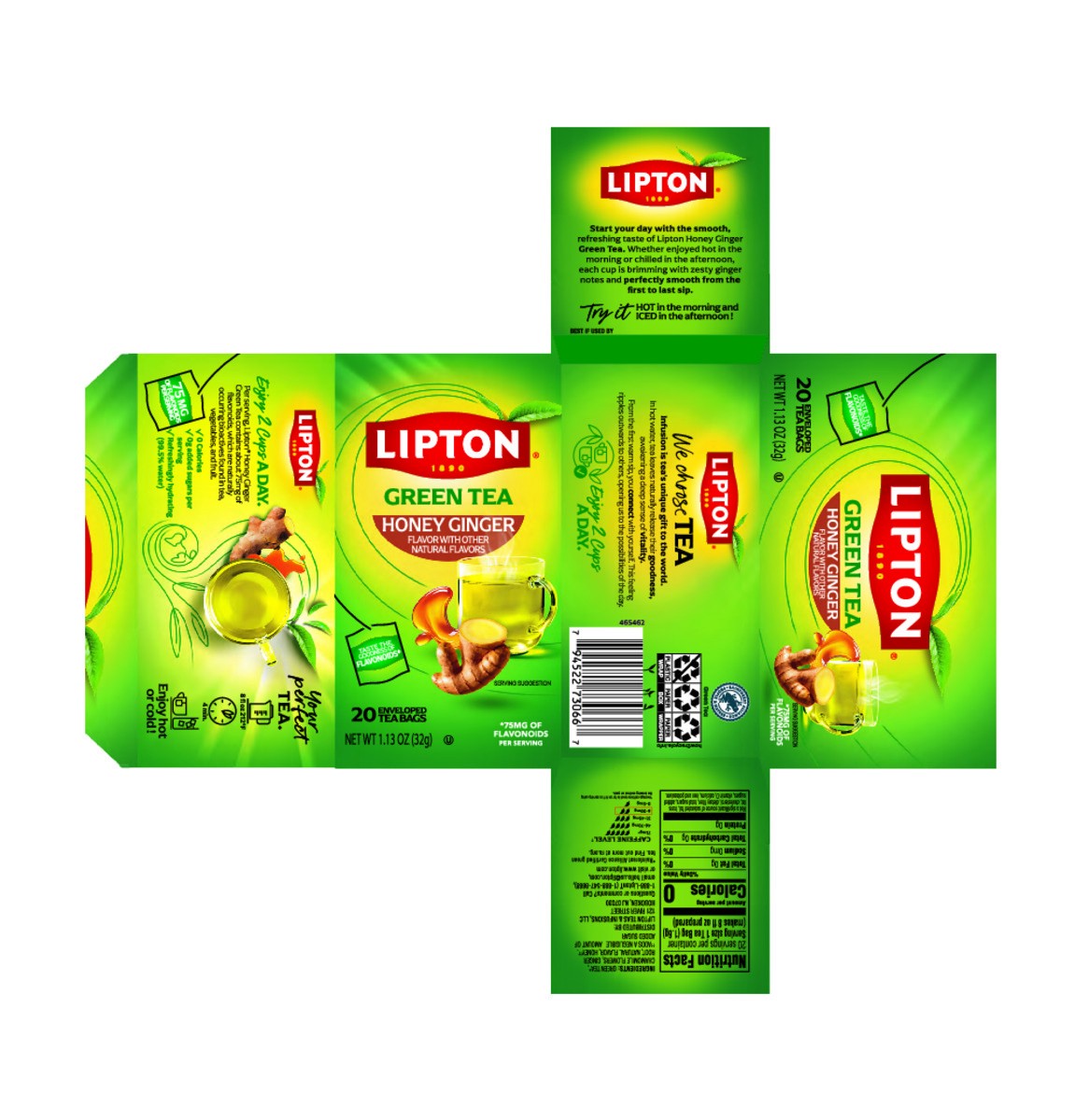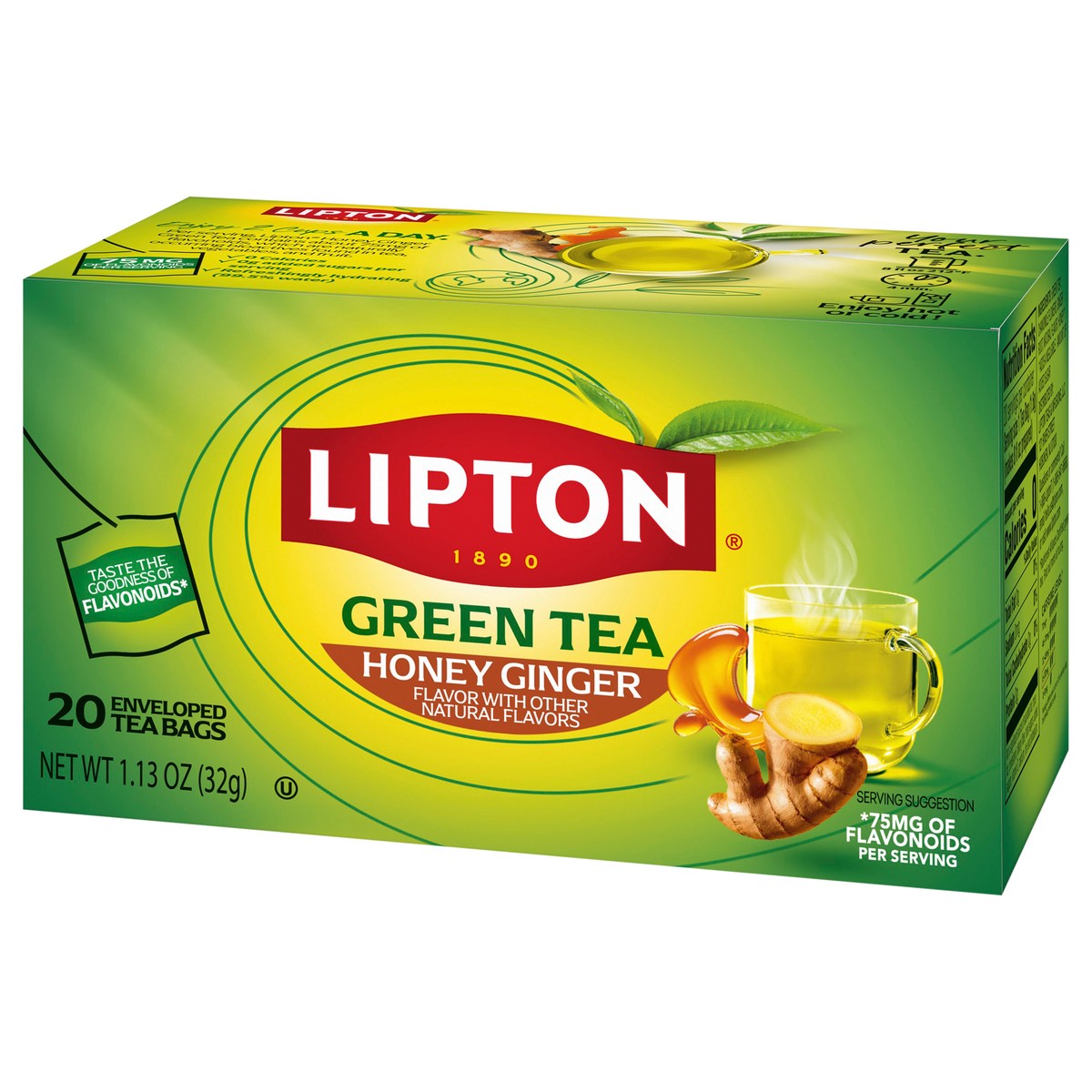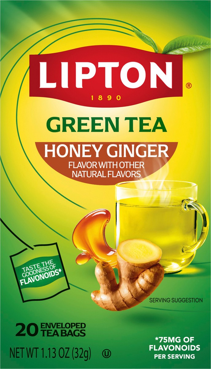 Lipton Honey Ginger Green Tea Bags, Flavored, Unsweetened, 20 ct Box