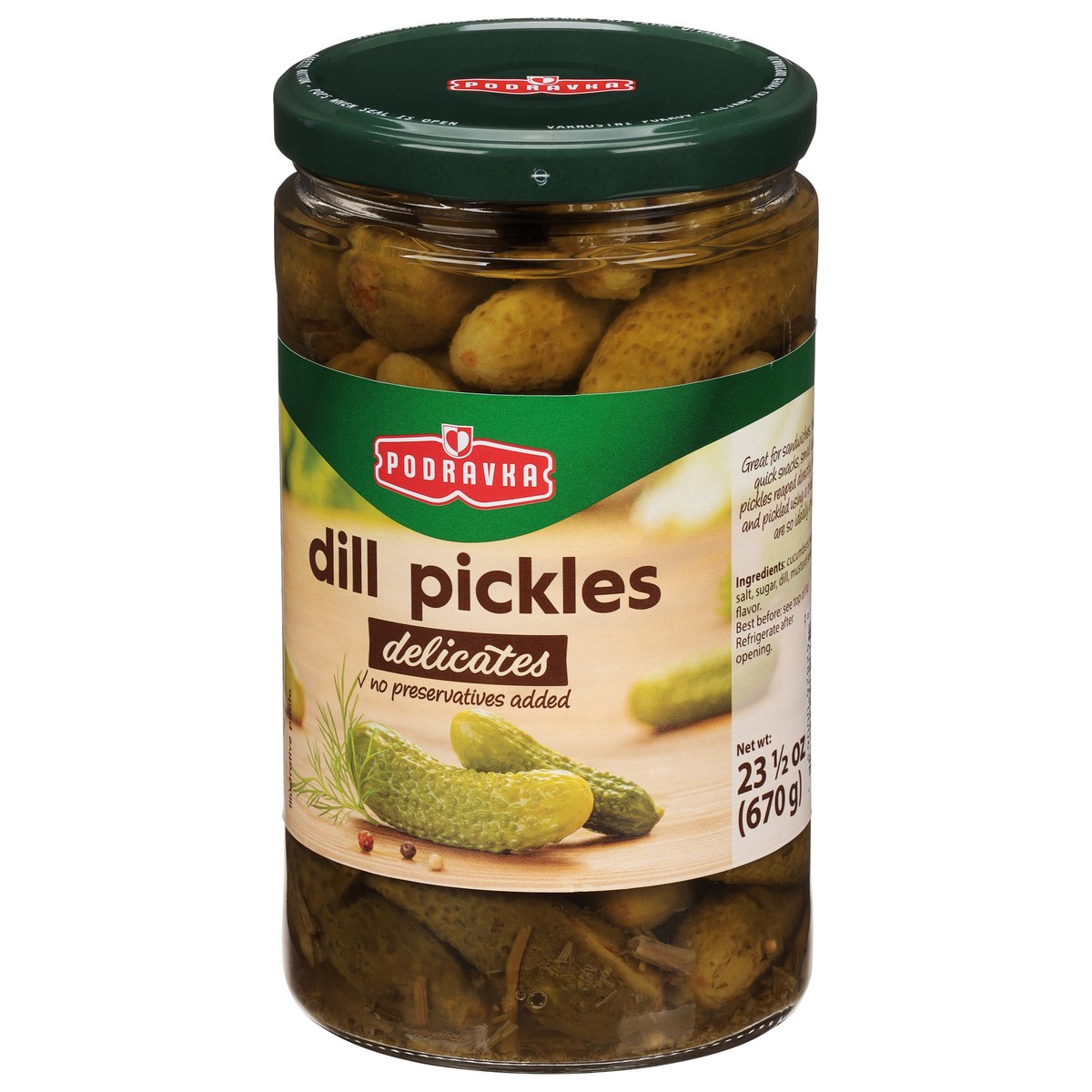 No preservatives added. Great for sandwiches, fresh salads or quick snacks, small delicacy dill pickles reaped directly from our fields and pickled using a traditional recipe are so ideally crunchy.