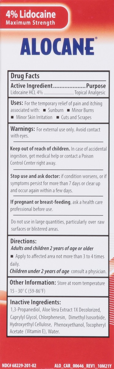 Active Ingredients: Benzalkonium CI (4 %), First Aid Antiseptic; Lidocaine HCI (4 %), Topical Pain Relief. Inactive Ingredients: Aloe Barbadensis Leaf Juice, Caprylyl Glycol, Chlorophenesin , Dimethyl…
