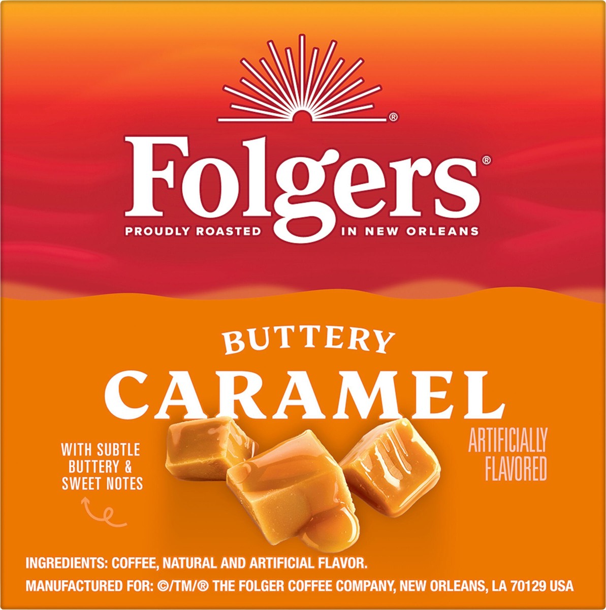 What do you get when you add convenience and caramel flair to your favorite coffee? Folgers Buttery Caramel artificially flavored coffee pods. Deliciously smooth and buttery sweet, this coffee deliver…