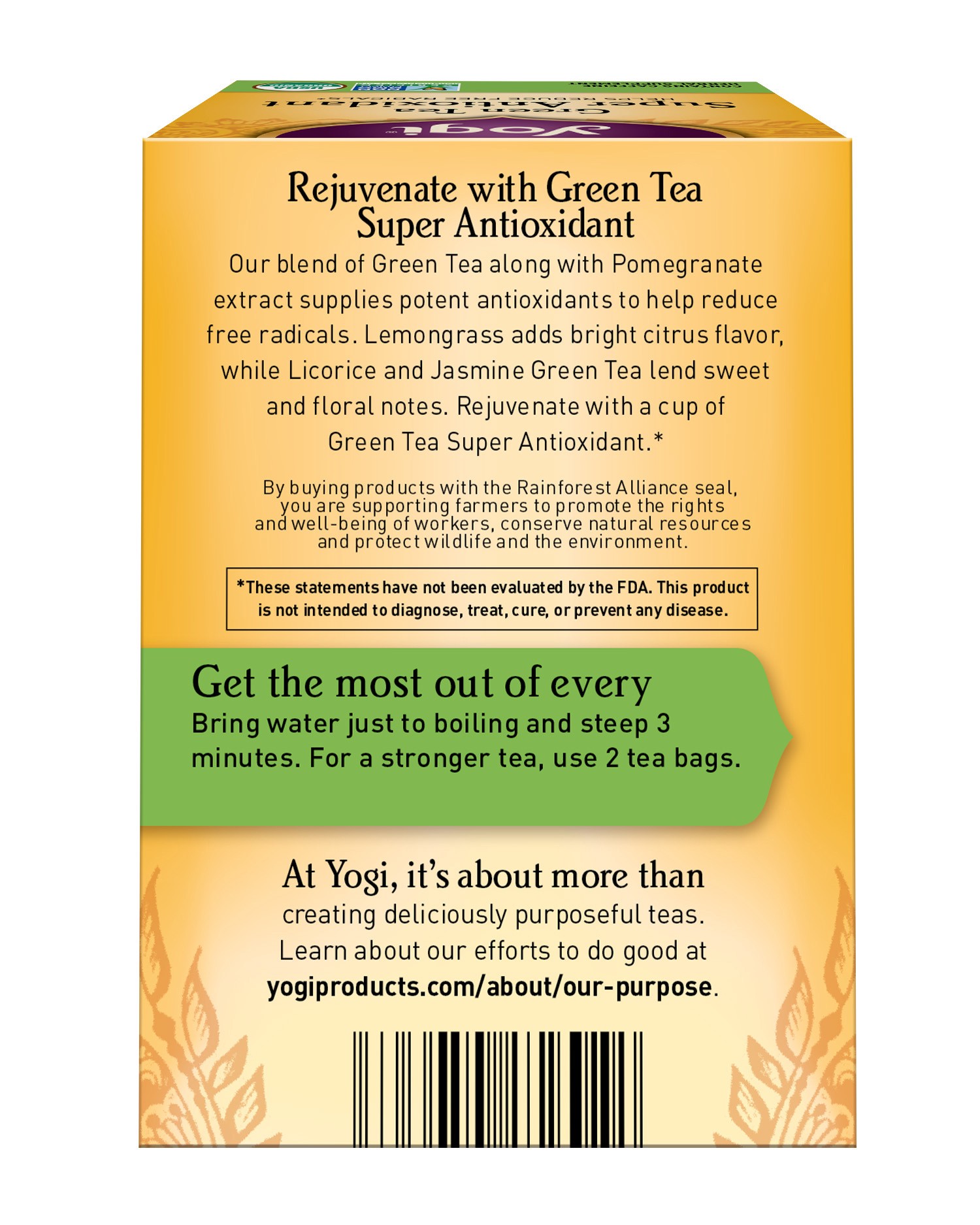 Yogi Green Tea Super Antioxidant tea is purposefully formulated to supply antioxidants and support overall health. We combine our select blend of Green Tea with Pomegranate Extract, which supplies nat…