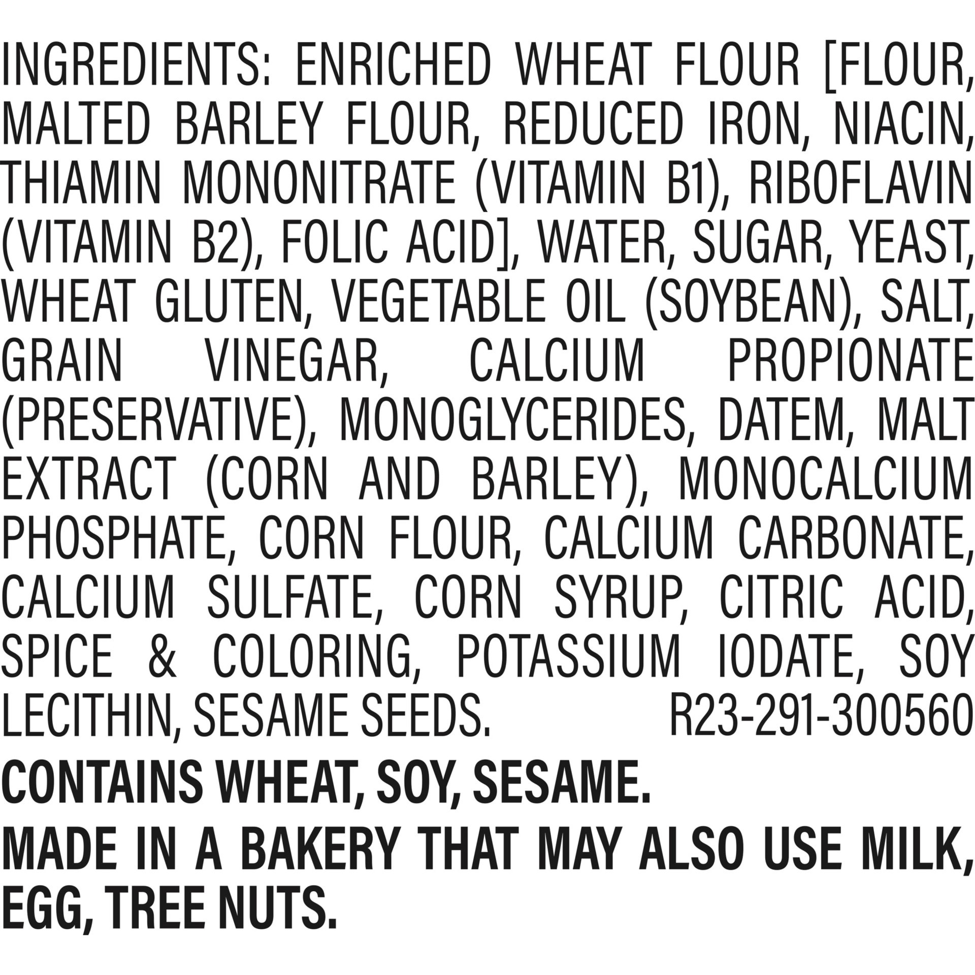 Enriched Wheat Flour [Flour, Malted Barley Flour, Reduced Iron, Niacin, Thiamin Mononitrate (Vitamin B1), Riboflavin (Vitamin B2), Folic Acid], Water, Sugar, Yeast, Wheat Gluten, Vegetable Oil (Soybea…