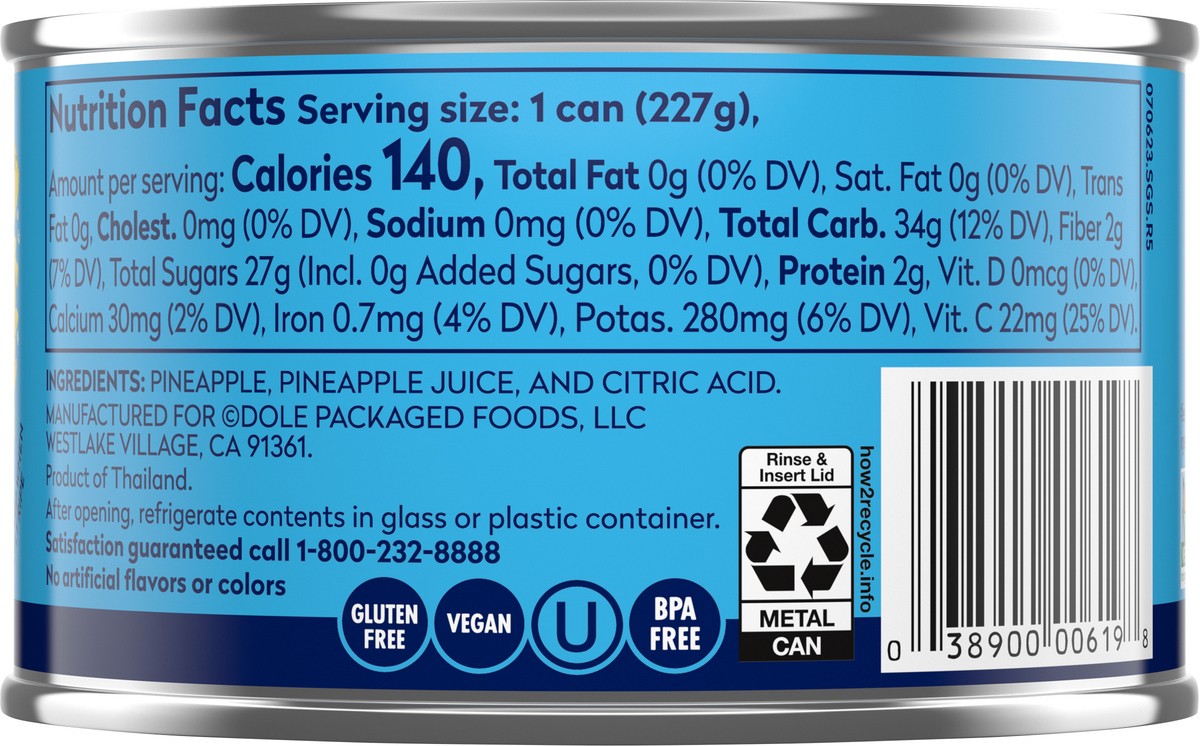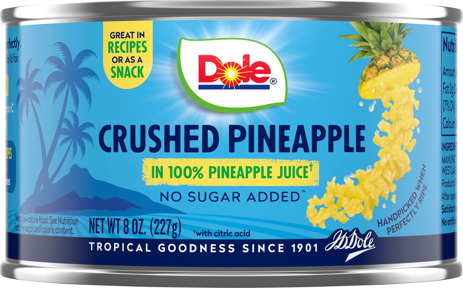 Finely crushed golden pineapple. Captured at its freshest and conveniently cut into golden pieces of pure deliciousness, Dole Canned Pineapple is ready to enjoy on its own, or in your favorite recipe.…