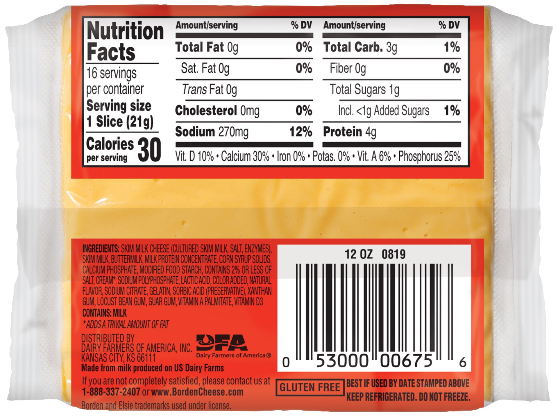 Borden Fat Free American Singles Cheese