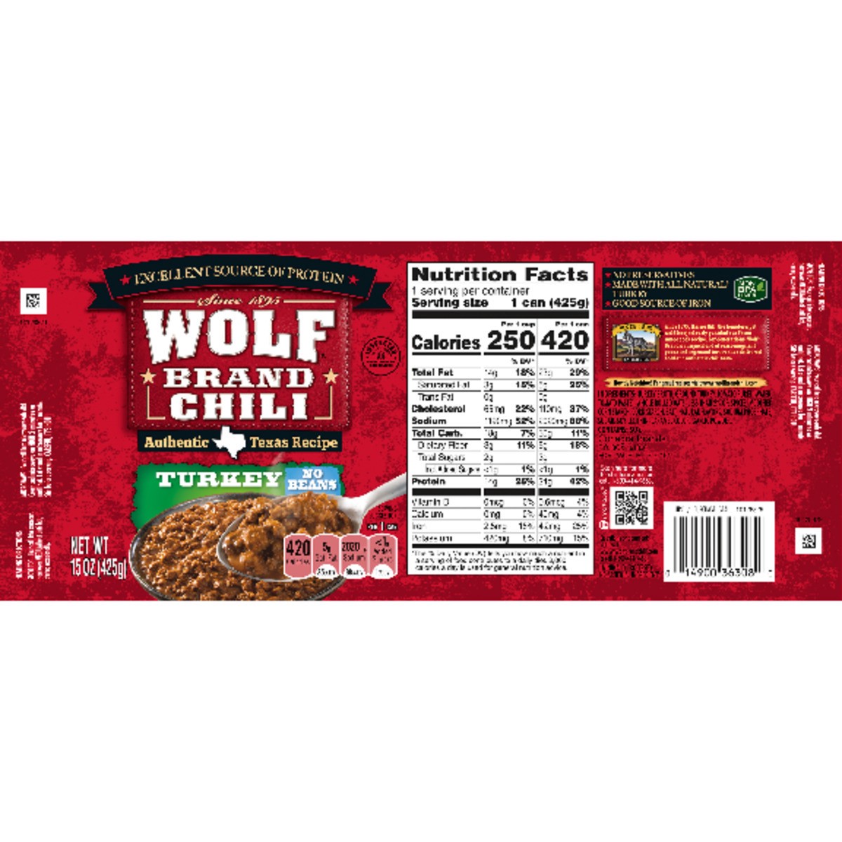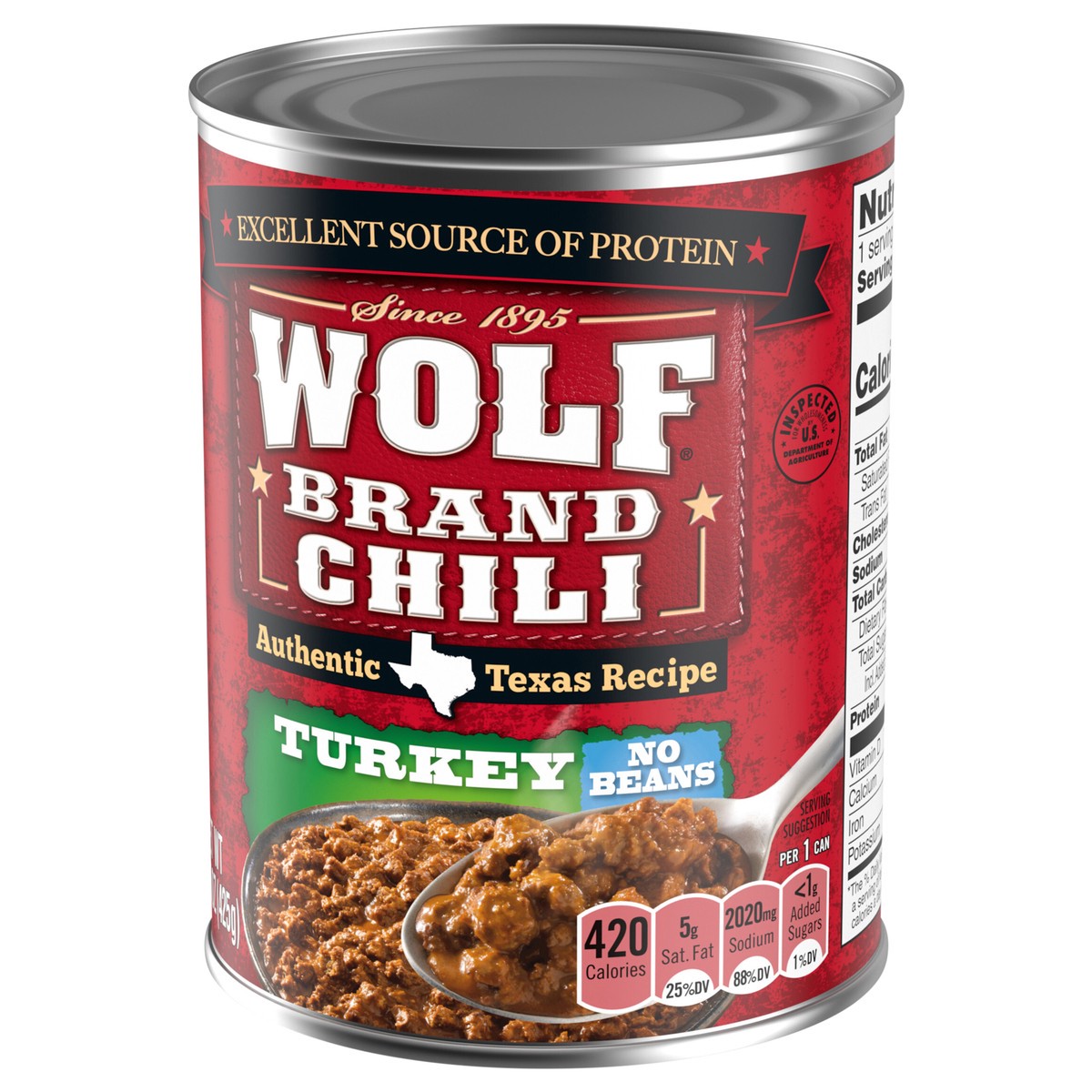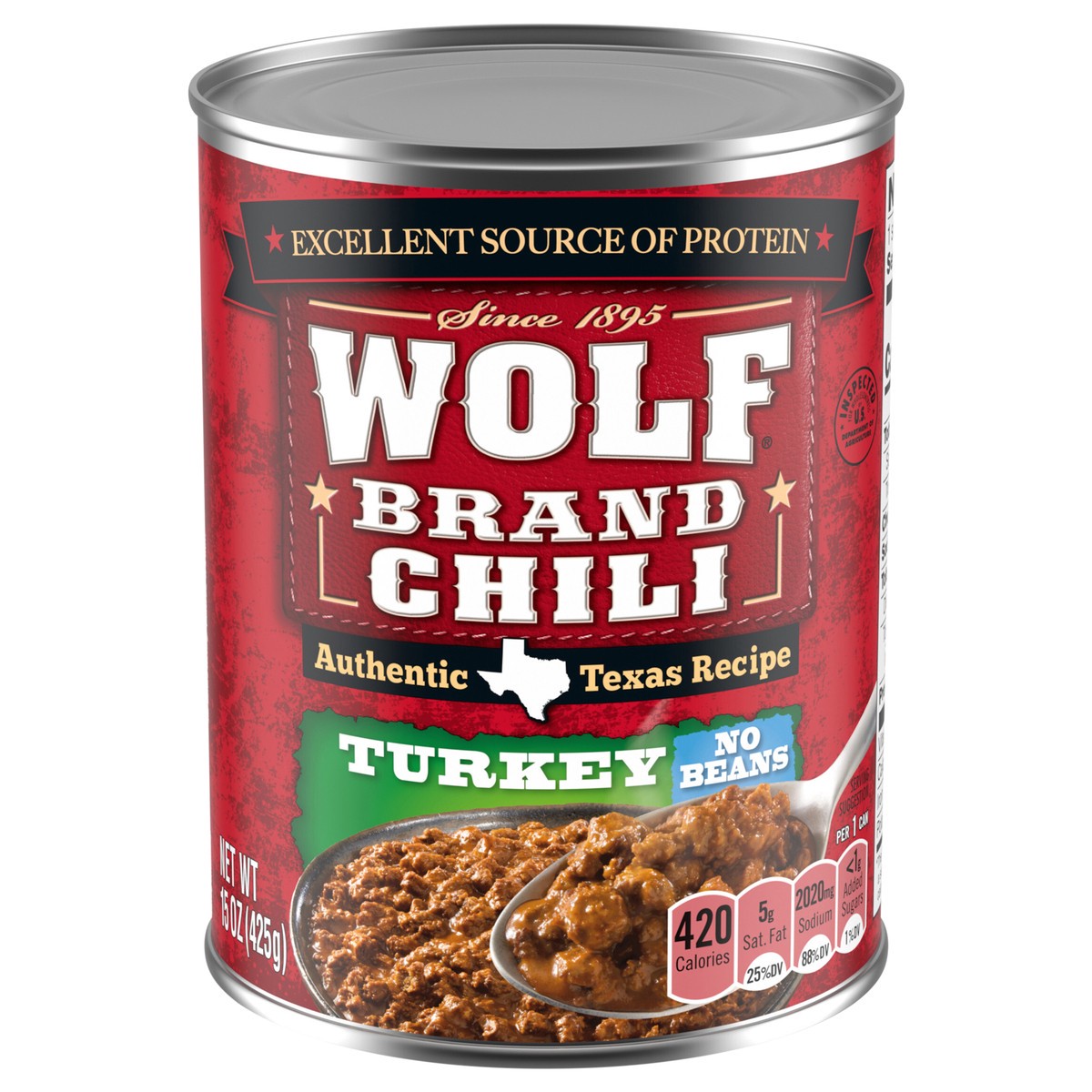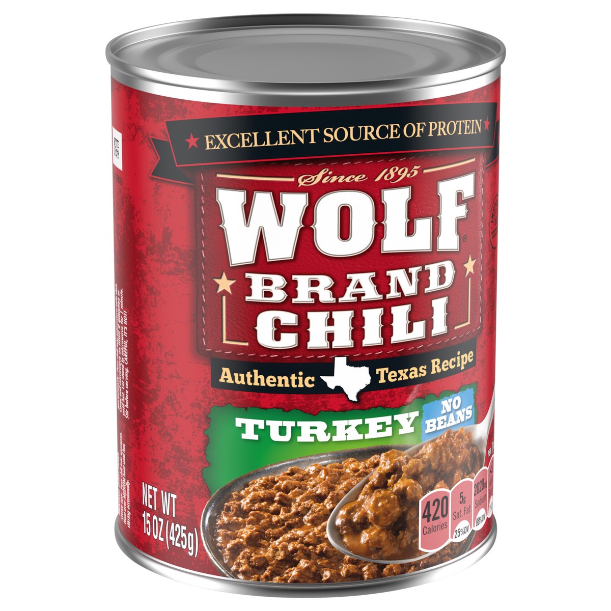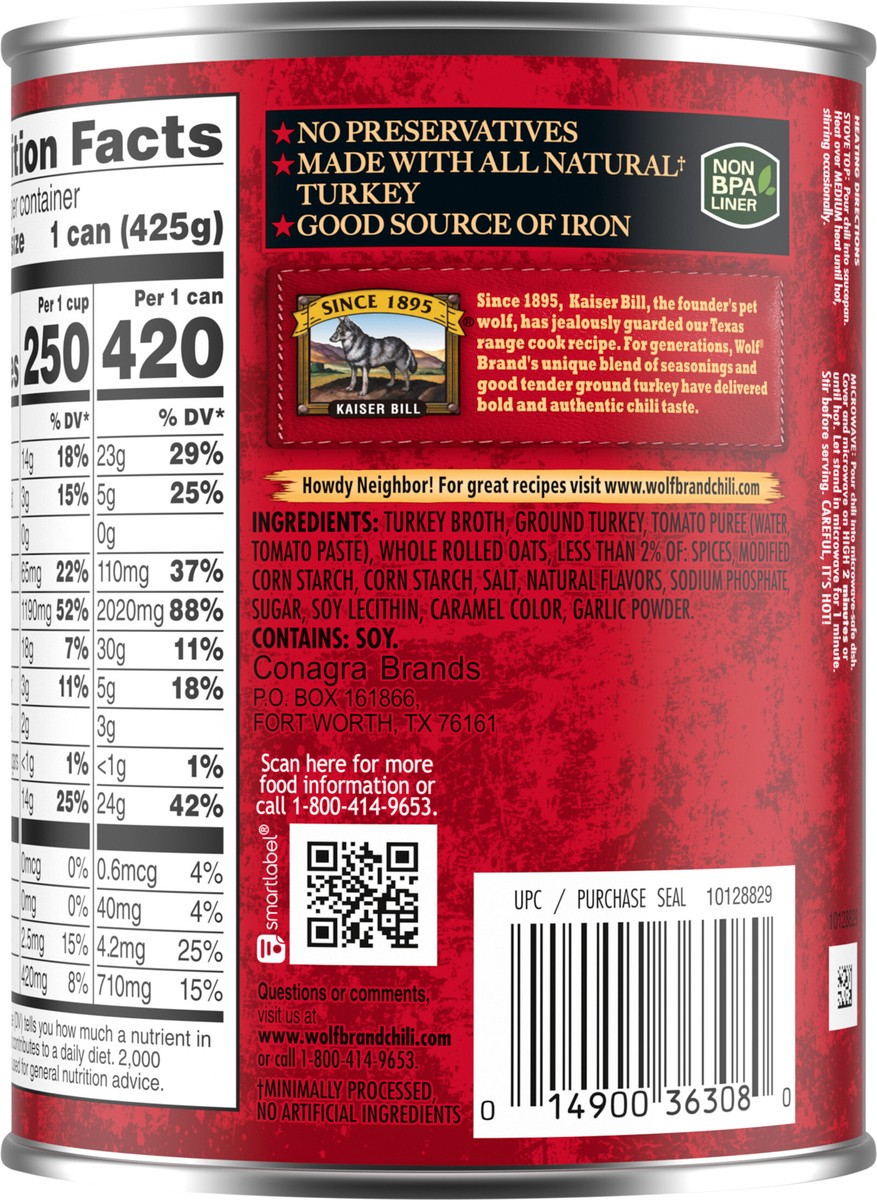 Wolf Brand Turkey Chili Without Beans, 96% Fat Free, 32g Protein Per Serving, 15 oz. Can