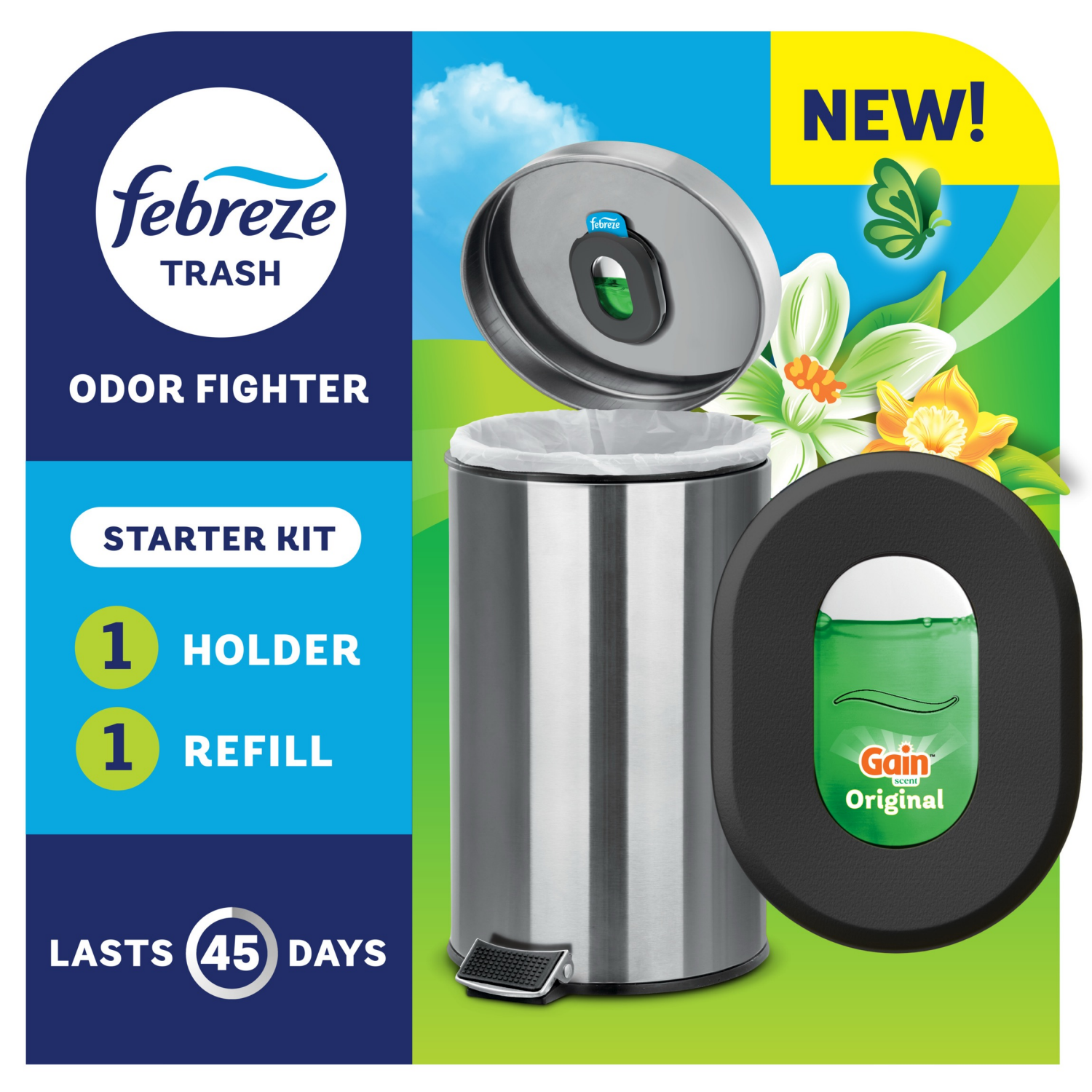 Febreze Trash Odor Fighter, Trash Can Air Freshener, Gain Original Scent, 1 Holder + 1 Refill