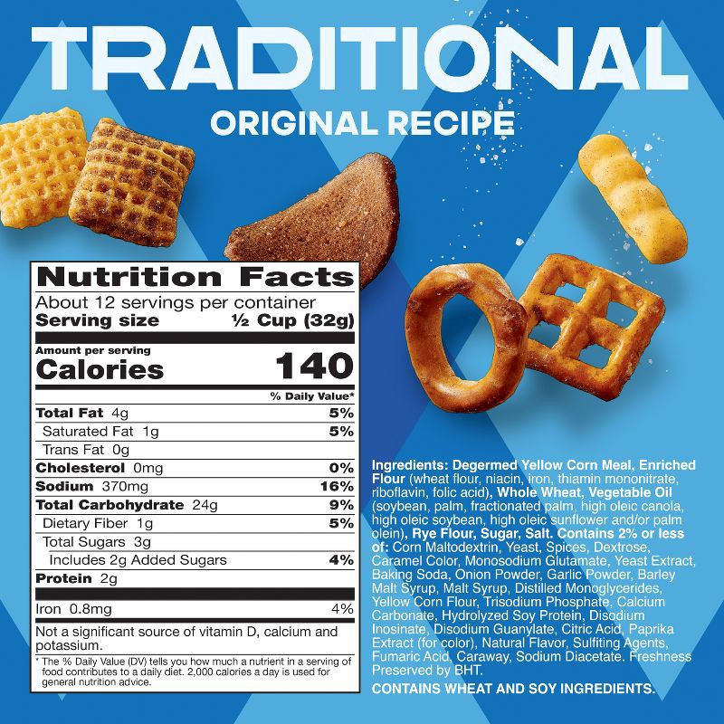 - CONTAINS: One 13.5 oz Family Size bag of Chex Mix Traditional Original Recipe Snack Mix