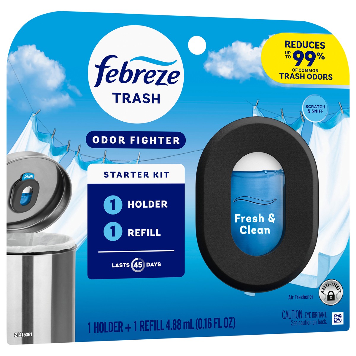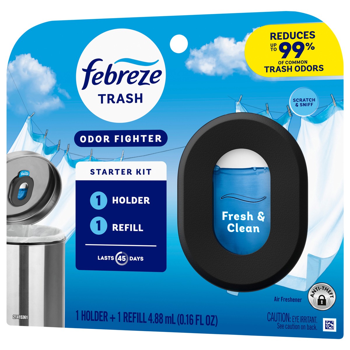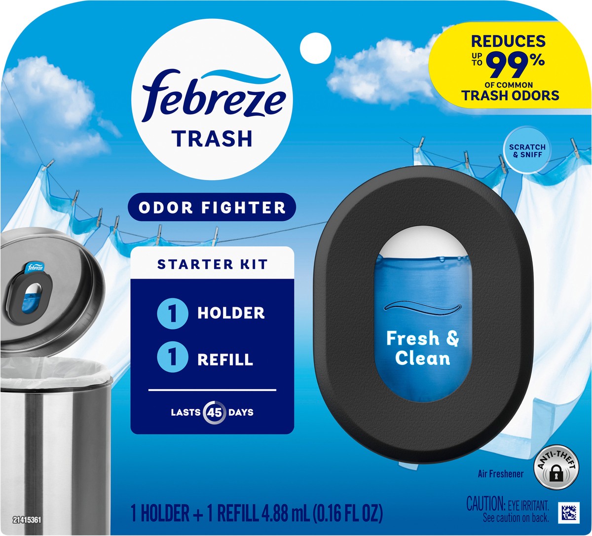 Febreze Trash Odor Fighter, Trash Can Air Freshener, Fresh Clean Scent, 1 Holder + 1 Refill