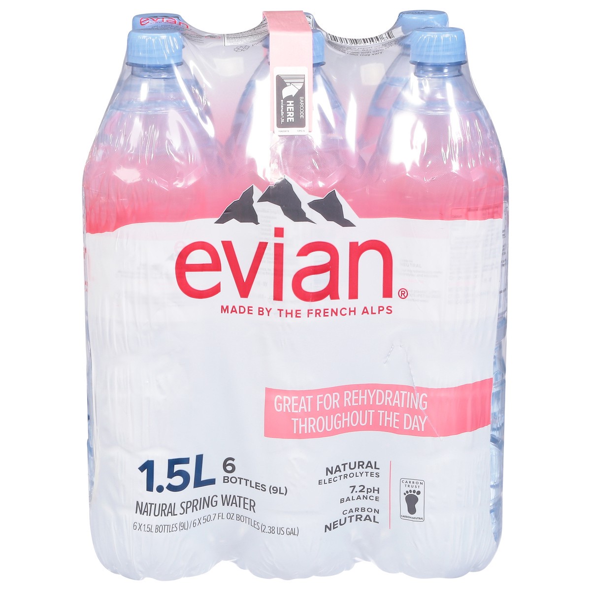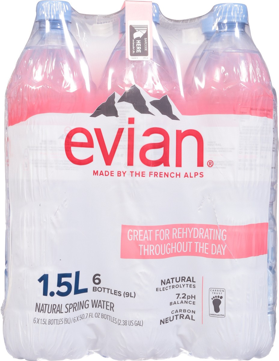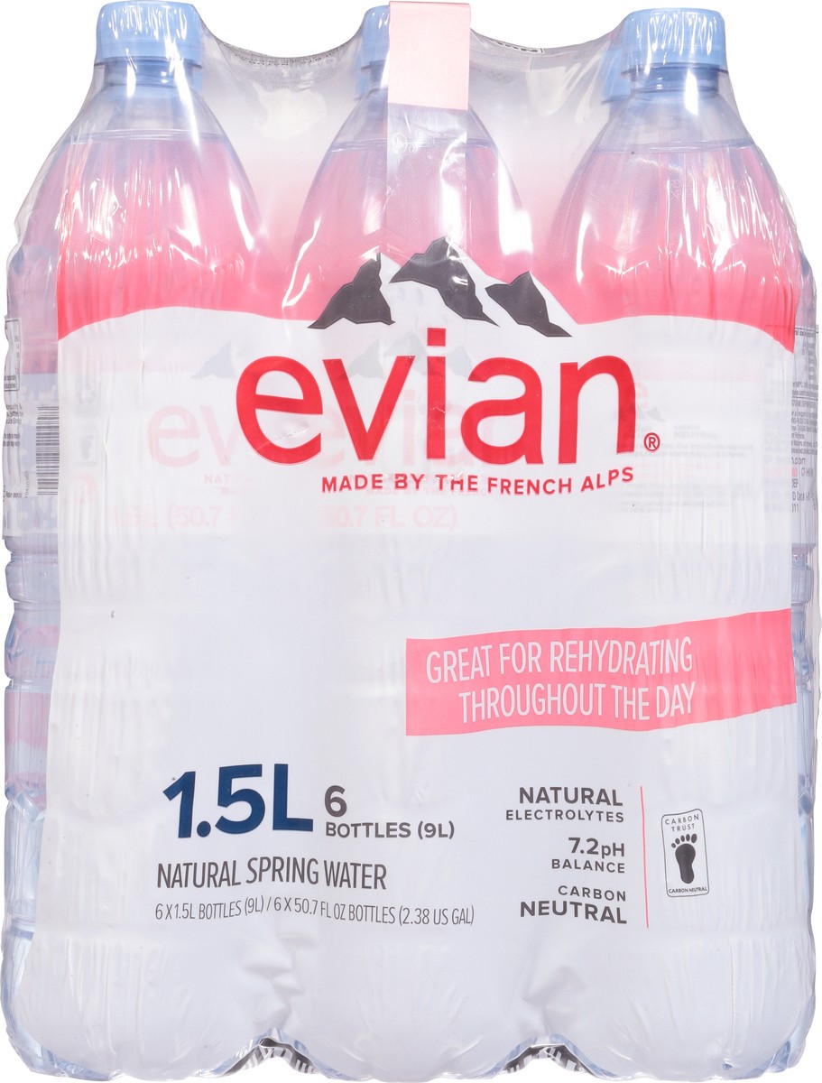 evian Natural Spring Water, 1.5 L bottles, 6 pack