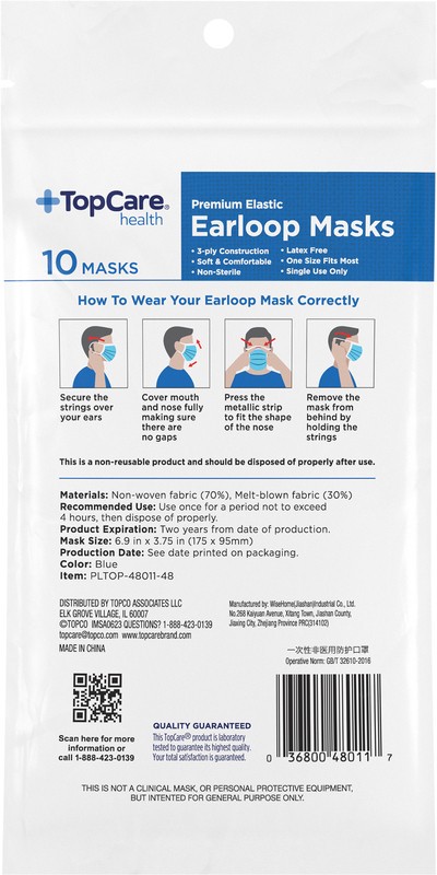 TopCare Top Care Topcare Health Earloop Masks - 10 Count