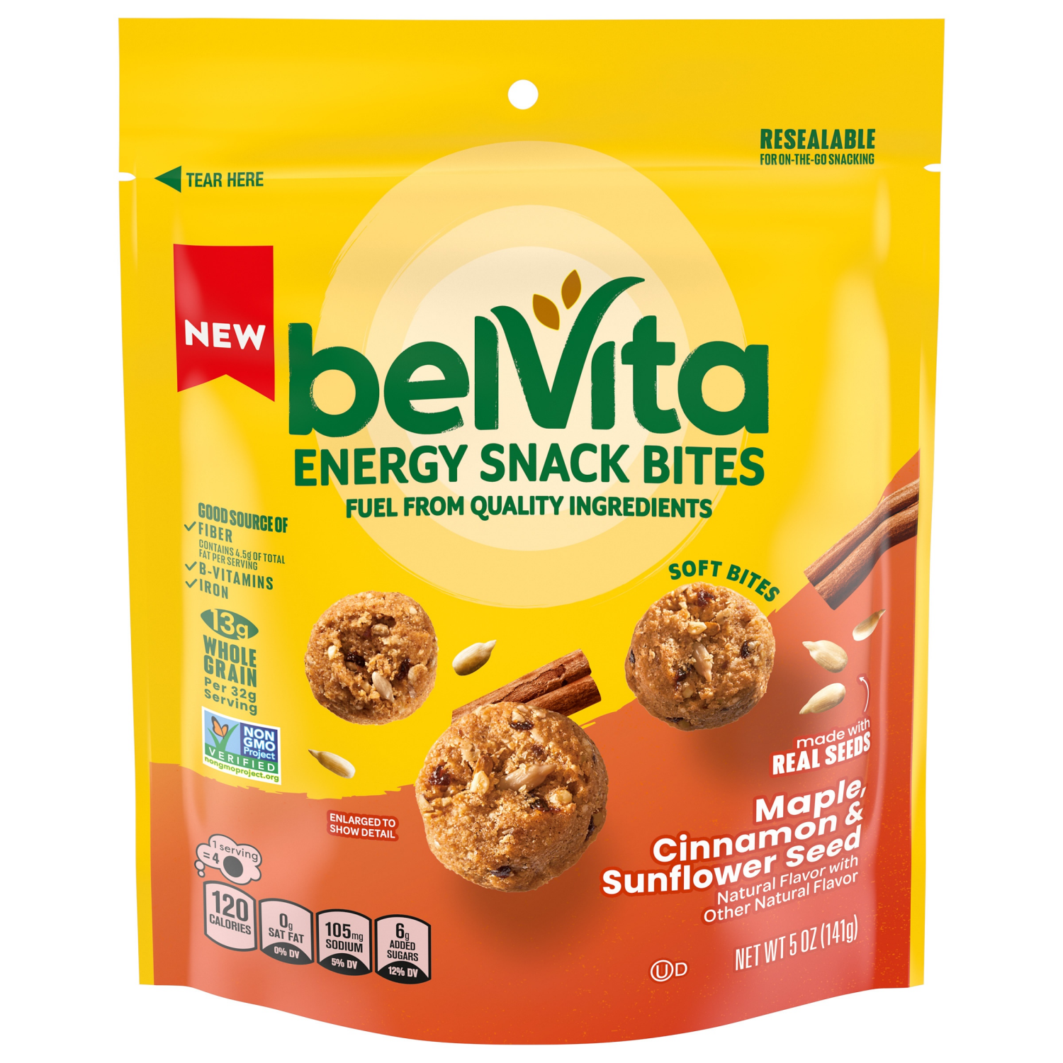 Maple, Cinnamon and Sunflower Seed belVita Energy Snack Bites are delicious snacks to help fuel your busy morning. Made with real seeds, these soft, tasty snack bites have a delightful flavor combinat…